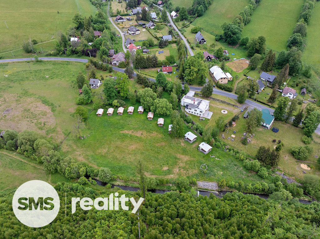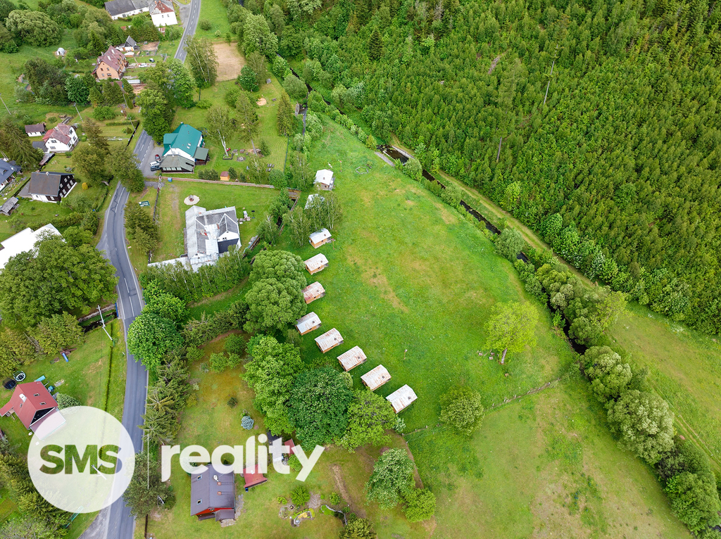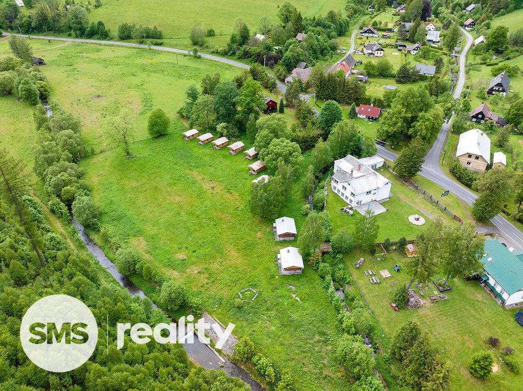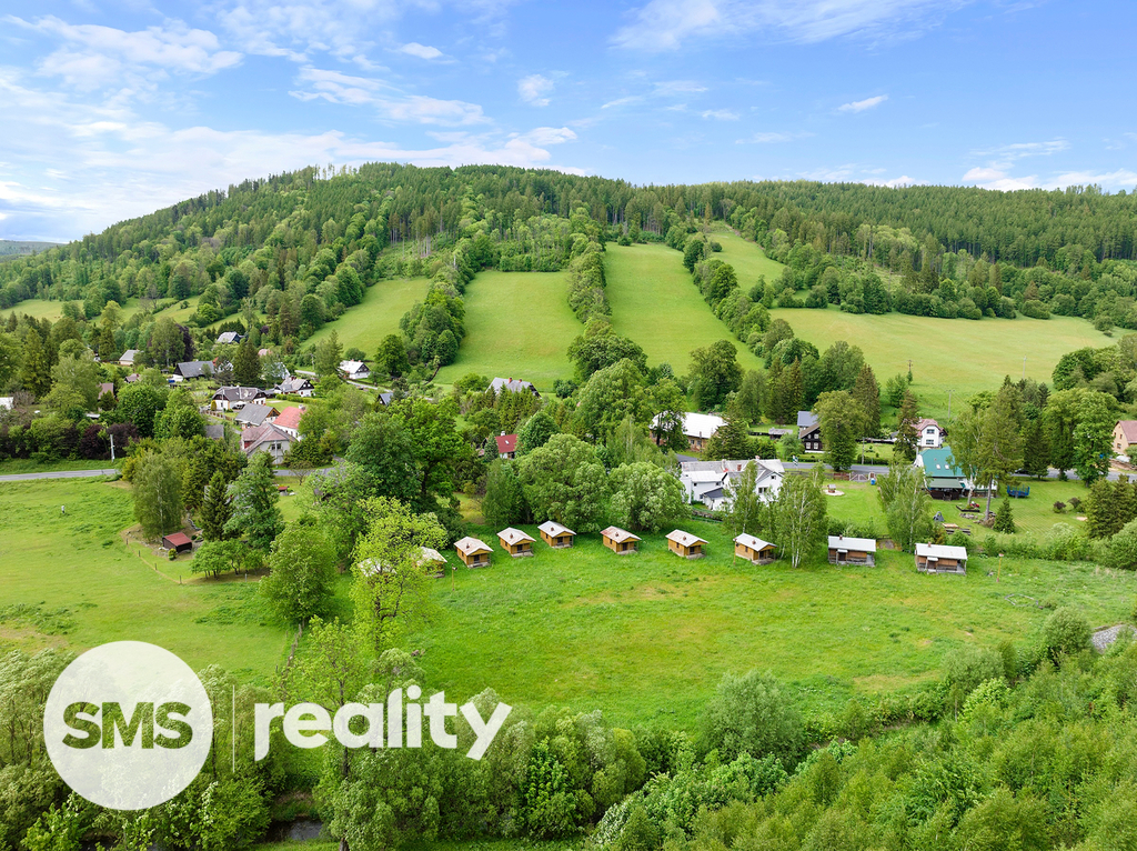 10 původních chatek – možnost renovace nebo výstavby nových ubytovacích jednotek (chatky jsou napojeny na elektřinu)