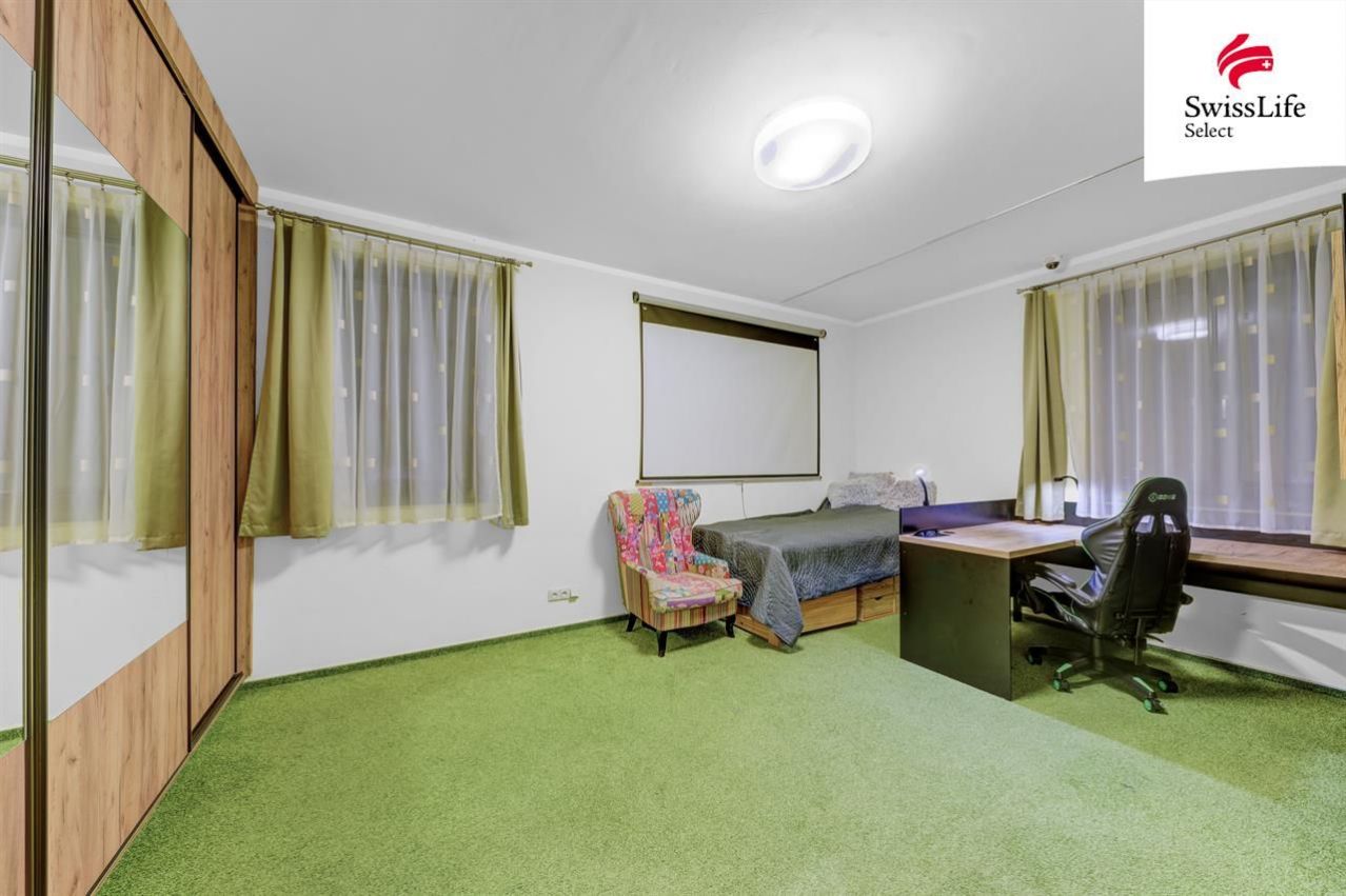 V podkroví rodinného domu se nachází prostorná pracovna, koupelna s wc a relaxační pokoj s finskou saunou. V podkroví lze využít i další prostory, které nyní nejsou dokončené. Majitelé nemovitosti zajímavým způsobem využili vzrostlého javoru na jižní straně domu. Kruhová terasa o ploše 80 m2, která vznikla kolem kmene stromu, nabízí krásný pohled na celou jižní část pozemku a přímo vybízí k relaxaci, odpočinku nebo k posezení s přáteli po náročném pracovním týdnu. Pod pergolou na východní straně domu je k dispozici venkovní kuchyň s posezením. Veškeré obložení exteriéru domu a zídek je z přírodního kamene, na celou stavbu, exteriér i interiér byly použity nadstandartní materiály včetně osvětlovací techniky.