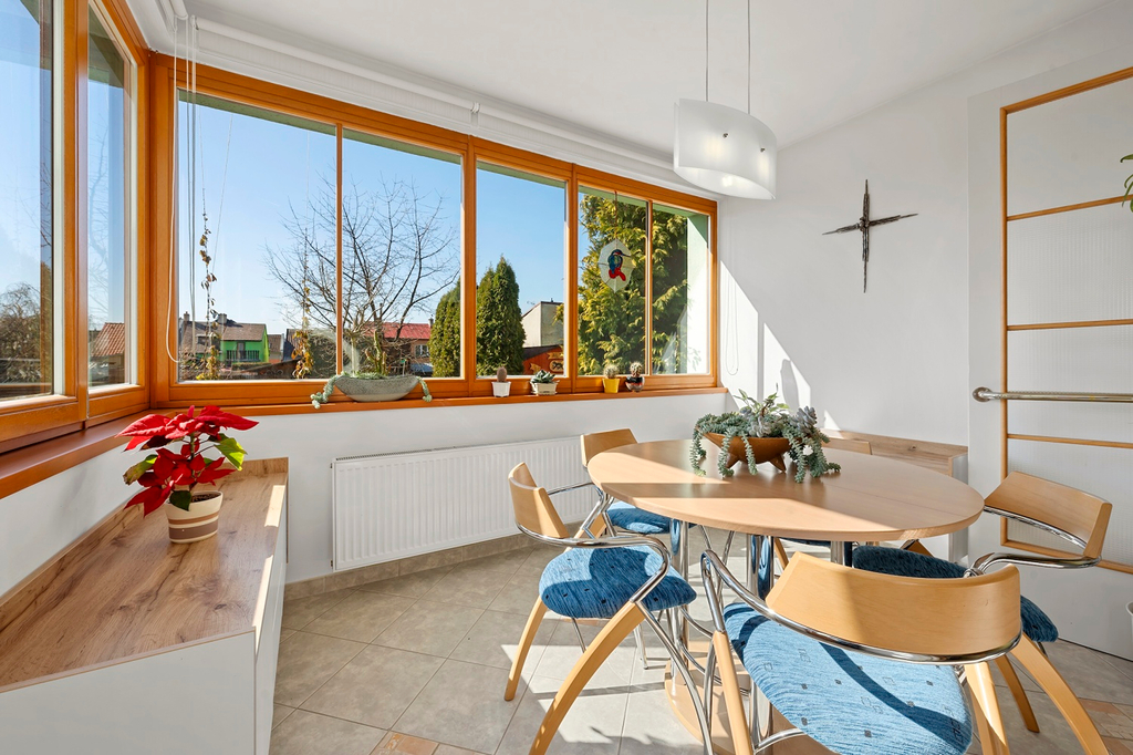 Dispozice domu je ideální pro rodinné bydlení. Výhodou je spousta prostoru se samostatnými vstupy do místností nebo propojení s krásnou zahradou, která nabízí prostor pro relaxaci, zahradničení a trávení volného času s rodinou. Dům je kompletně podsklepený - 4 samostatné místnosti plus kolárna, v 1.NP je prostorný obývací pokoj, kuchyně, zimní zahrada/jídelna a toaleta, ve 2.NP dětský pokoj, ložnice, koupelna a terasa orientovaná do zahrady a ve 3.NP další pokoj a menší pracovna.