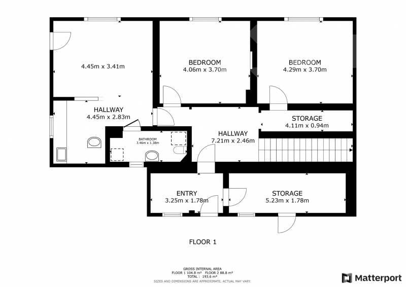 Po vstupu Vás přivítá prostorná chodba vedoucí do technické místnosti. Navazující chodba zpřístupňuje kadeřnictví, dva pokoje a schodiště do patra.