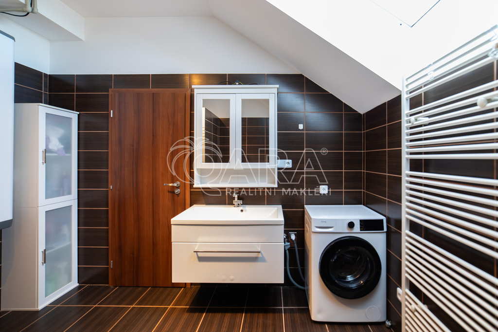 Byt je velmi světlý a prostorný. Vytápění zajišťuje tepelné čerpadlo a ohřev vody Bojler. Koupelna je vybavena velkou vanou, zděným sprchovým koutem a umyvadlem. Toaleta je samostatná. Obývací pokoj je spojen s kuchyní, kde se nachází nová kuchyňská linka s vestavěnými spotřebiči, je velmi prostorný, světlý a tvoří centrální prostor k odpočinku, nebo zážitkům s rodinou s krásným výhledem do zeleně.