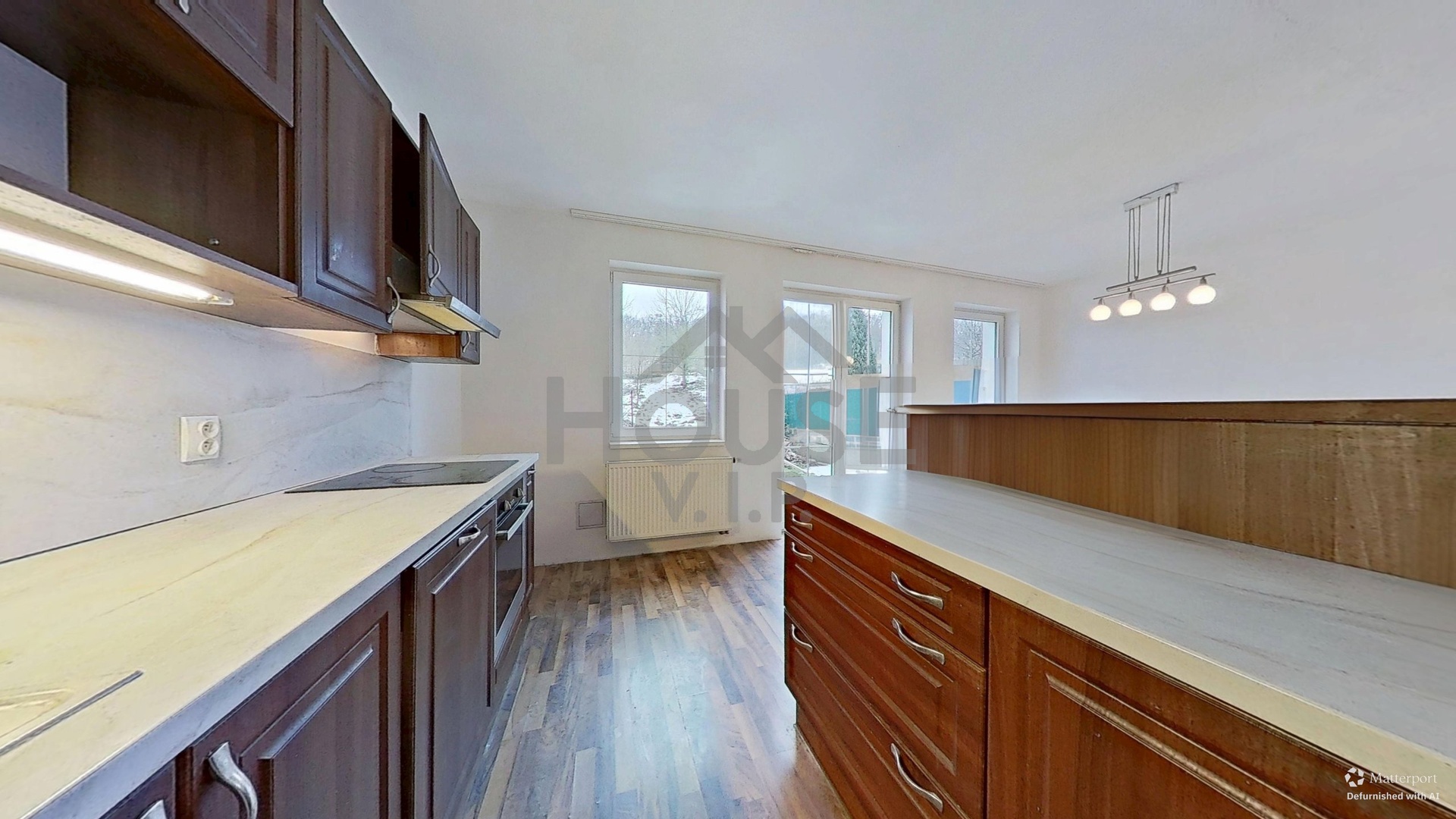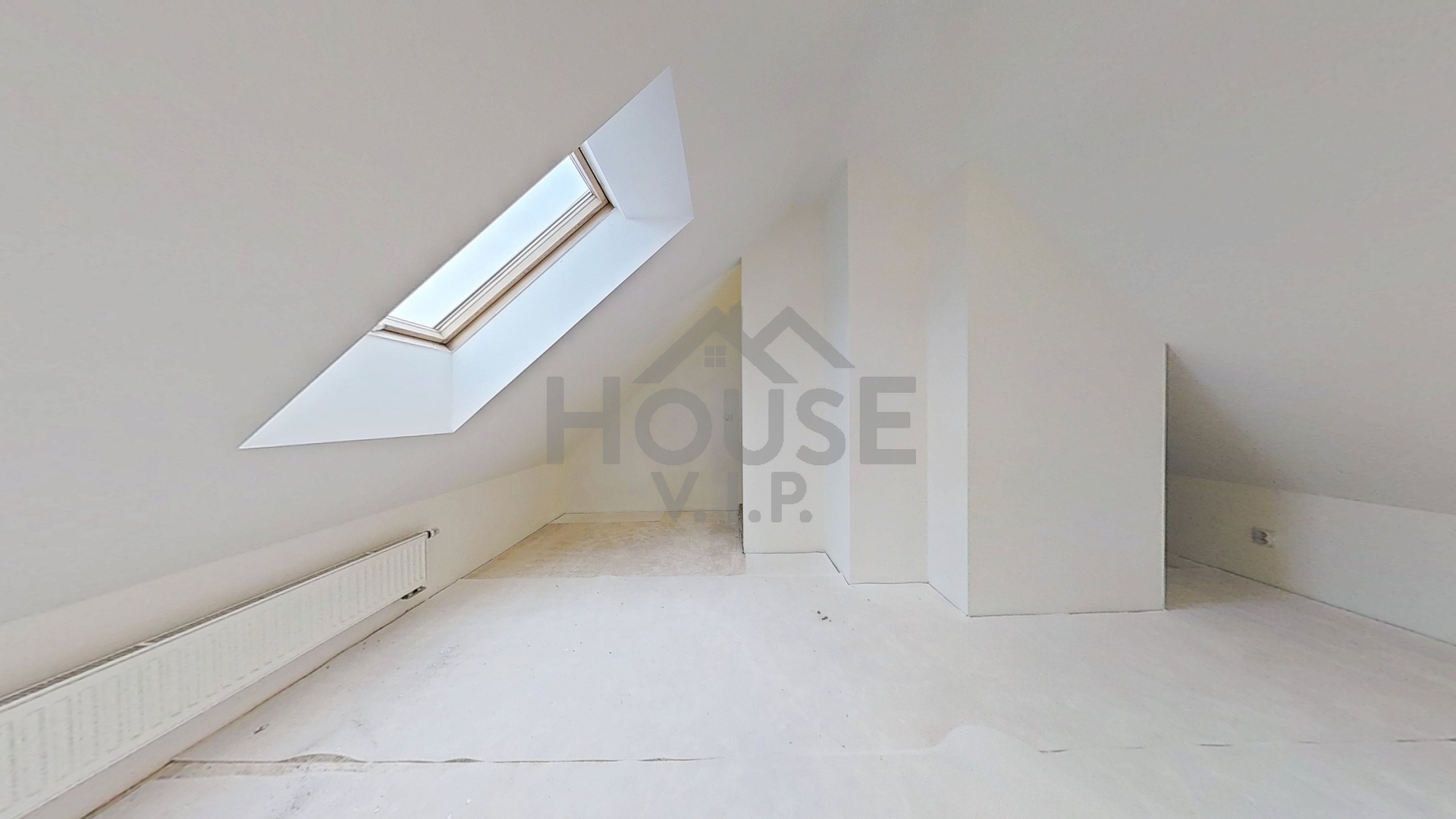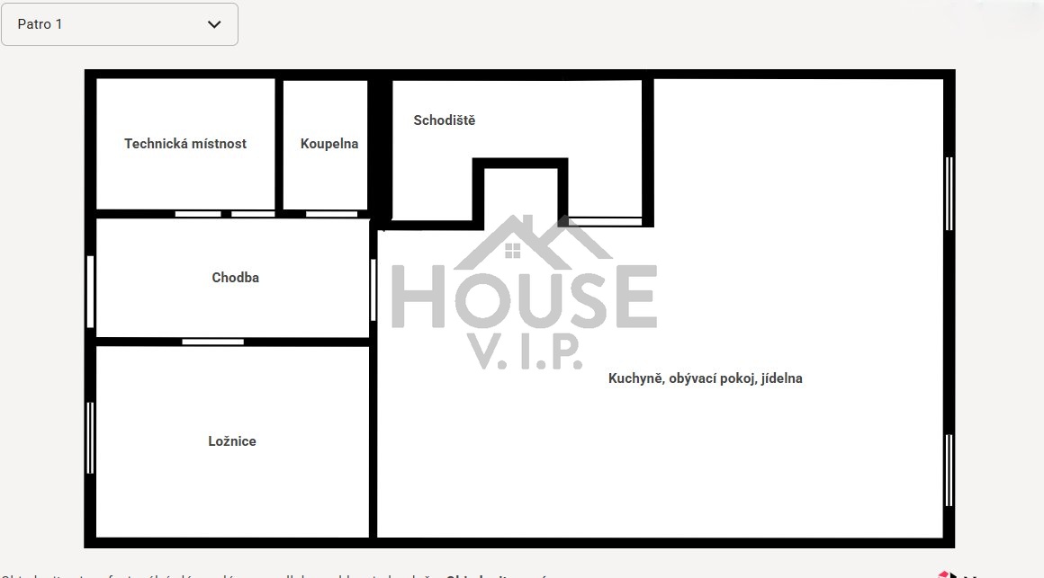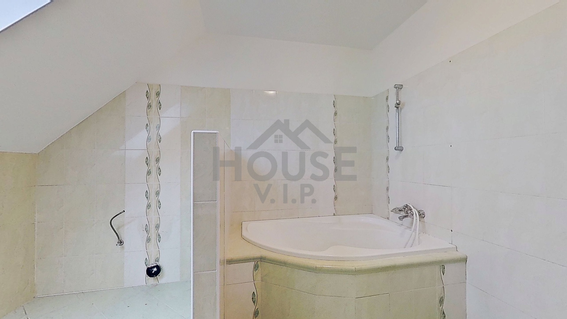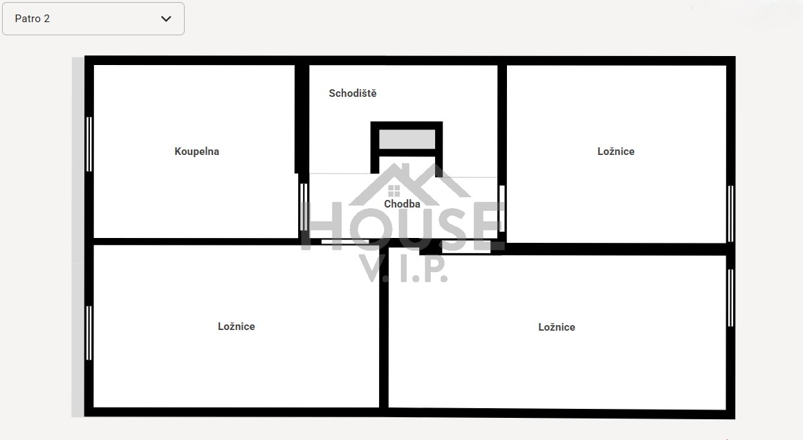 V prvním patře se nachází koupelna se sprchovým koutem, rohovou vanou a toaletou a dále tři samostatné pokoje, z nichž jeden je vybaven vestavěnou rohovou skříní. Druhé patro (podkroví) nabízí velkorysý pokoj se šikmými stropy, který může sloužit například jako ložnice, pracovna nebo herna. Dům je ve velmi dobrém technickém stavu, nicméně nový majitel může počítat s drobnými úpravami dle vlastních představ – zejména s výměnou podlahových krytin v obývacím pokoji a v podkrovním pokoji a případnou modernizací kuchyňské linky. Energetický štítek se vyhotovuje, proto zatím uvádíme "G".