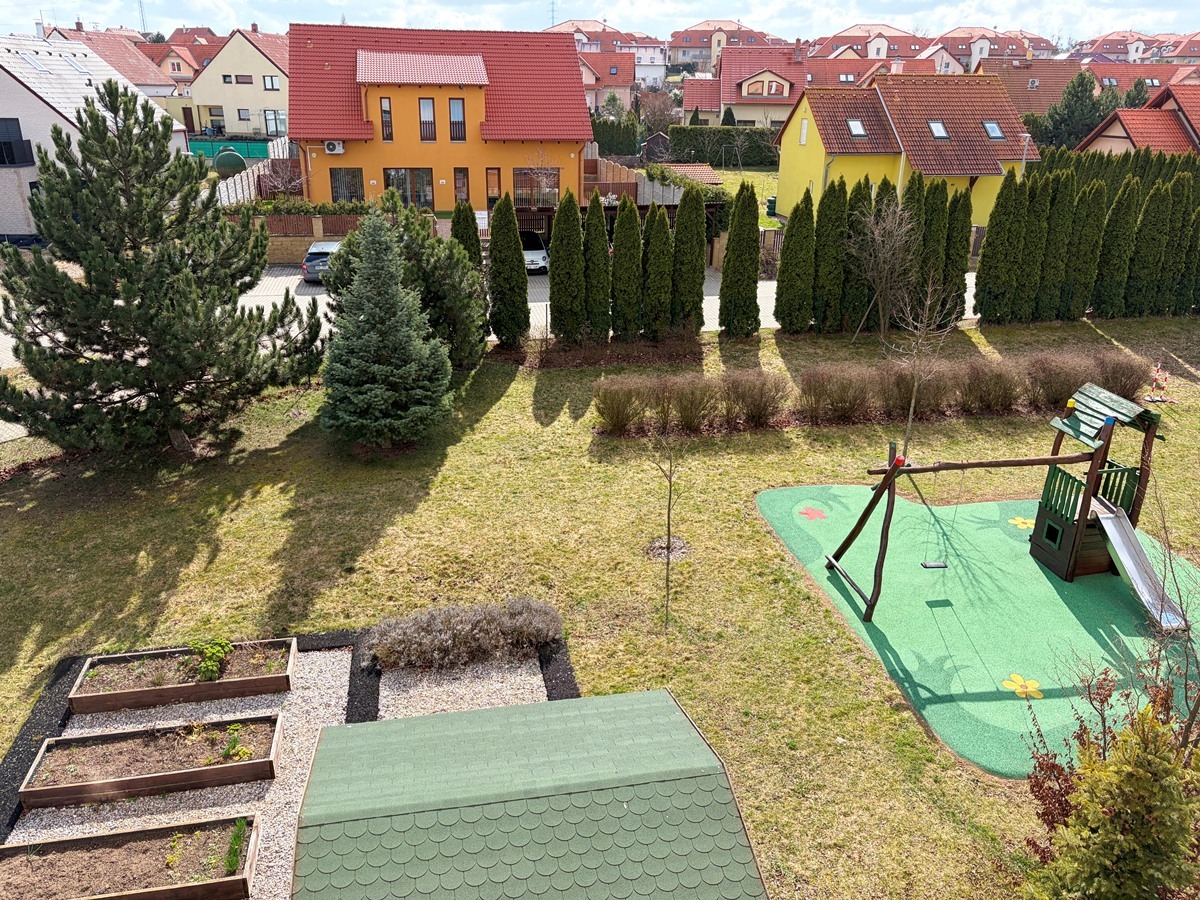 Nabízíme k pronájmu nezařízený byt o velikosti 3+kk, 95,17m2. Byt se nachází ve 2. patře novostavby z r. 2008. Byt má dva neprůchozí pokoje, dvě šatny a velký sklep 7m2 na patře ve dle bytu. V bytě zůstává pouze kuchyňská linka se sklokeramickou deskou, horkovzdušnou troubou. Koupelna s vanou, toaleta samostatně. Vytápěno vlastním elektrickým kotlem. Ohřev teplé vody el. Bojlerem. Krytina plovoucí podlahy. Okna situovaná na jih a sever s výhledem na horu Říp. Nízké náklady služby 1.545,-Kč/1os. (každá další osoba + 617,-Kč) + elektřina cca 1600,-Kč. Dobrá dostupnost - autobus zastávka přímo před domem a druhá bus zastávka cca 5min směr metro A Bořislavka. Veškerá občanská vybavenost v Horoměřicích nebo v Kralupech nad Vltavou. Pod domem mateřská školka, soukromá ZŠ v místě. Pohodlné parkování před domem. Vhodné bydlení pro rodinu. Nájem 22000,-Kč + služby 1545,-Kč + elektřina + Kauce 35tis. + Provize RK. K nastěhování ihned.