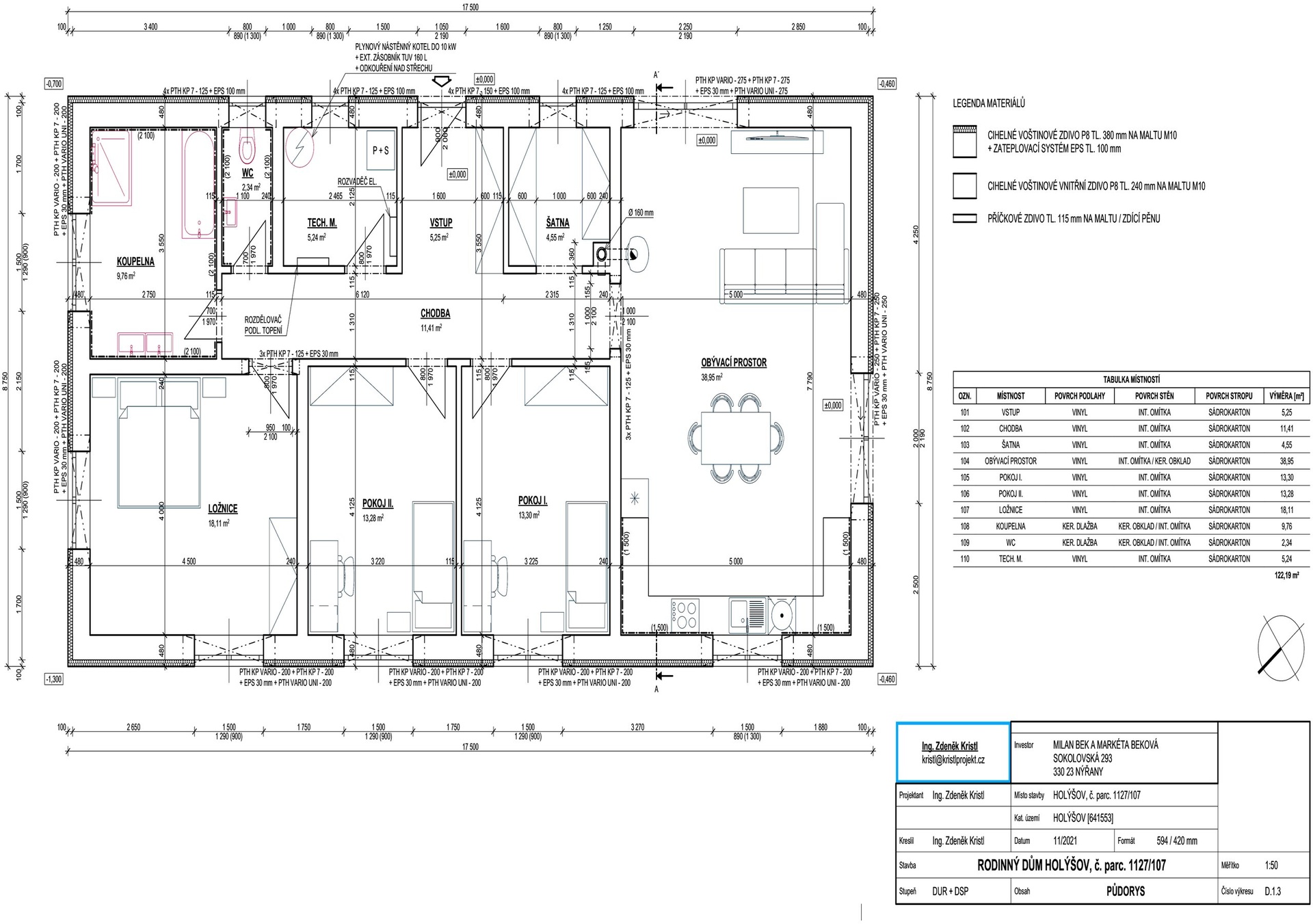 - čistá užitná plocha obytných místností je 122,2 m2