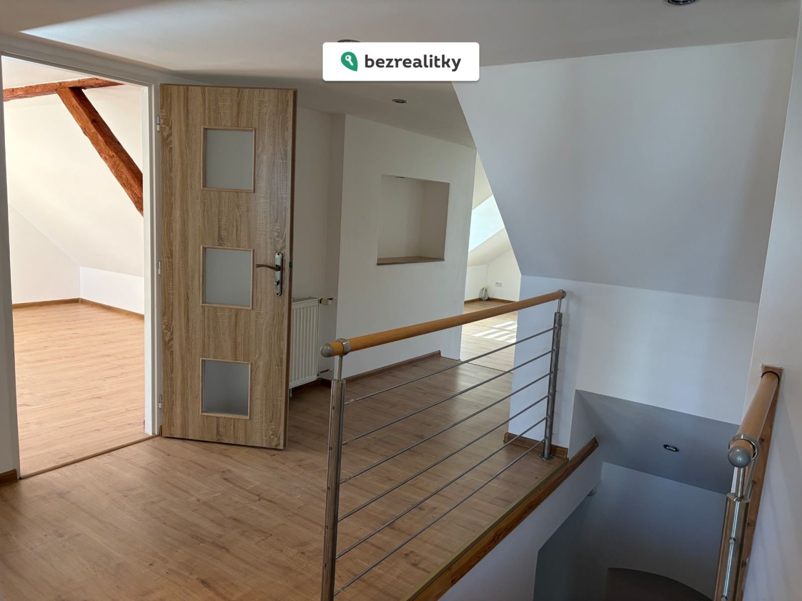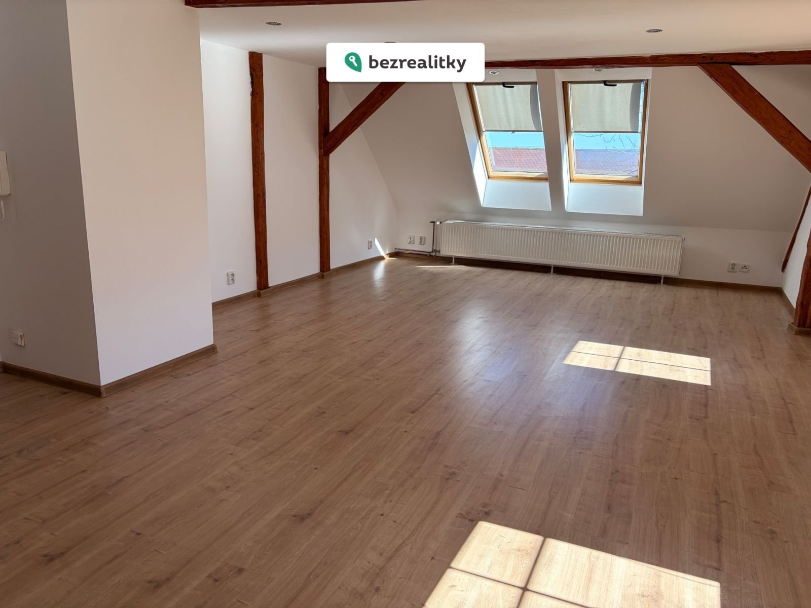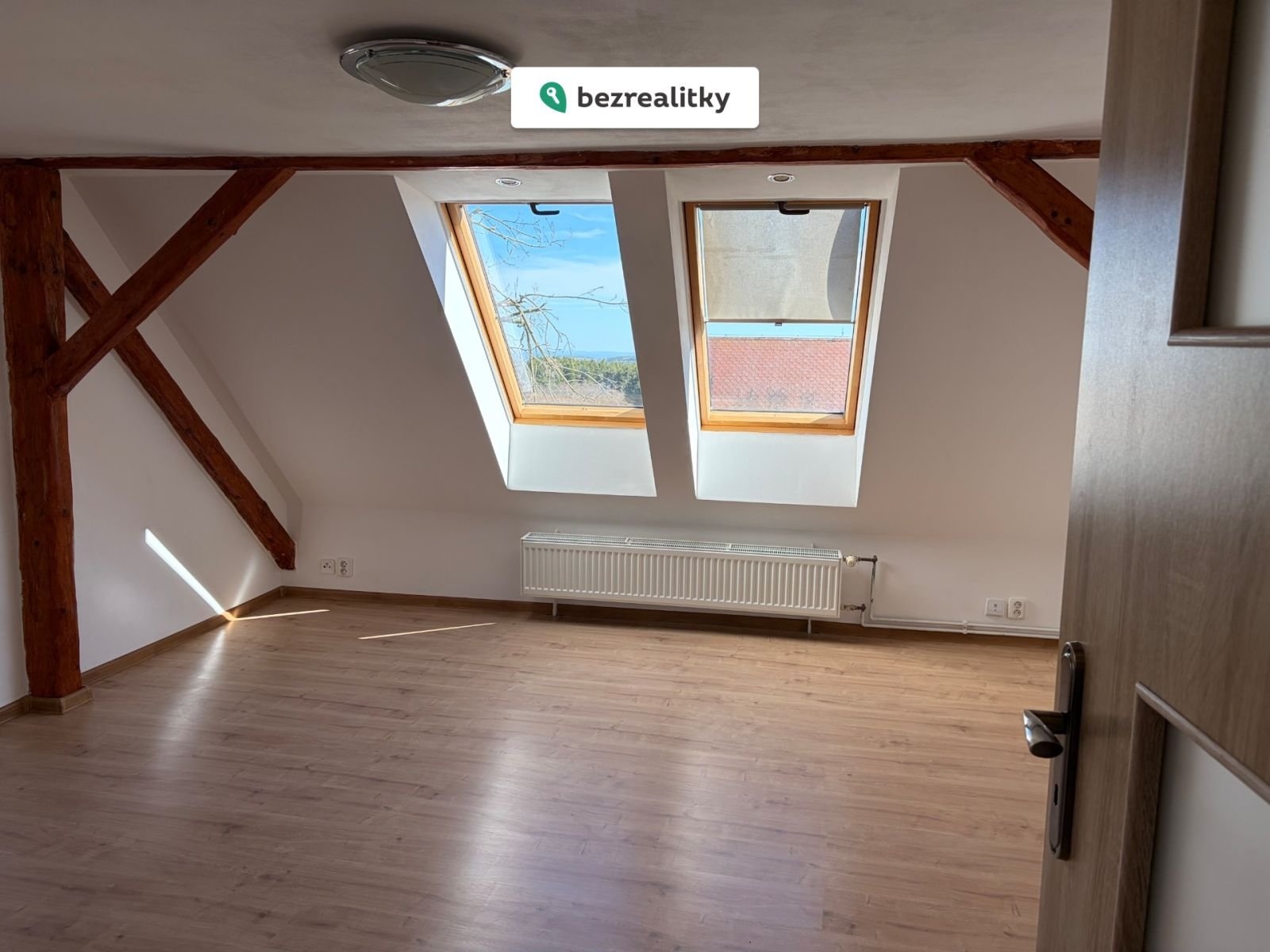 - Podkroví s odkrytými trámy a střešními okny (pracovna / ložnice / dětský pokoj)
