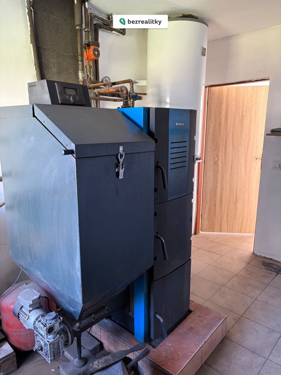 - Ústřední topení, kotel na tuhá paliva, radiátory ve všech místnostech