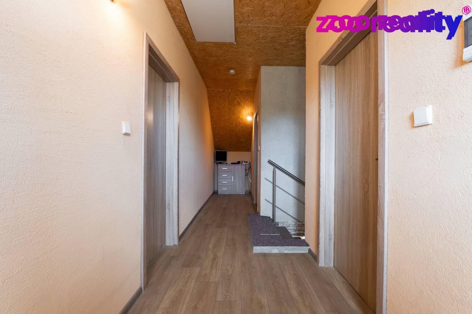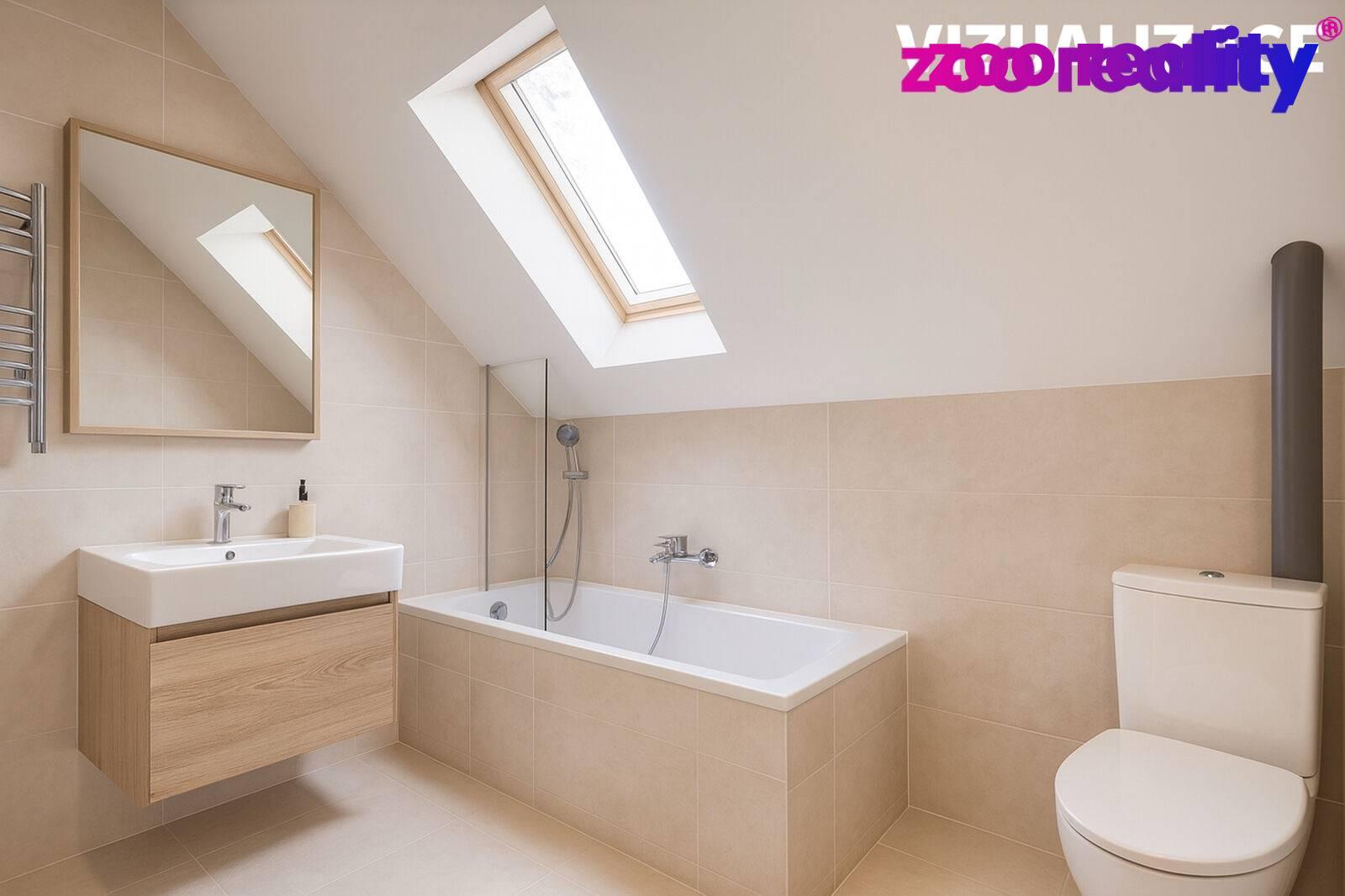 V přízemí najdeme vstupní předsíň, ložnici, koupelnu s toaletou, rohovou vanou a dostatečným prostorem pro pračku a sušičku, dále pak obývací pokoj spojený s kuchyňským koutem a vstupem na zahradu, který je ideální pro rodinné posezení a trávení volného času. V patře pak je myšleno na další koupelnu, kterou si můžete obložit dle vlastního vkusu (nabízíme foto s vizualizací) a dále jsou tu dva samostatné pokoje. Vytápění domu je řešeno elektrickými panely a krbovými kamny na dřevo s výměníkem, které zajistí příjemné teplo během chladných měsíců, ohřev vody řešen elektrickým bojlerem. O odpadní vodu se postará samostatná čistička.