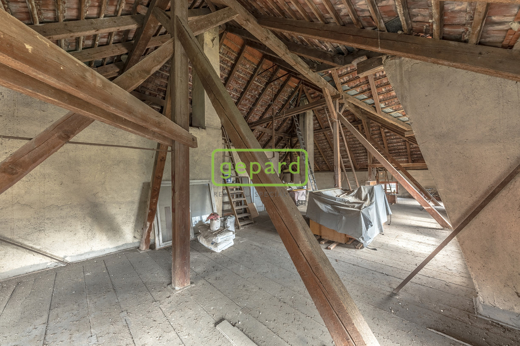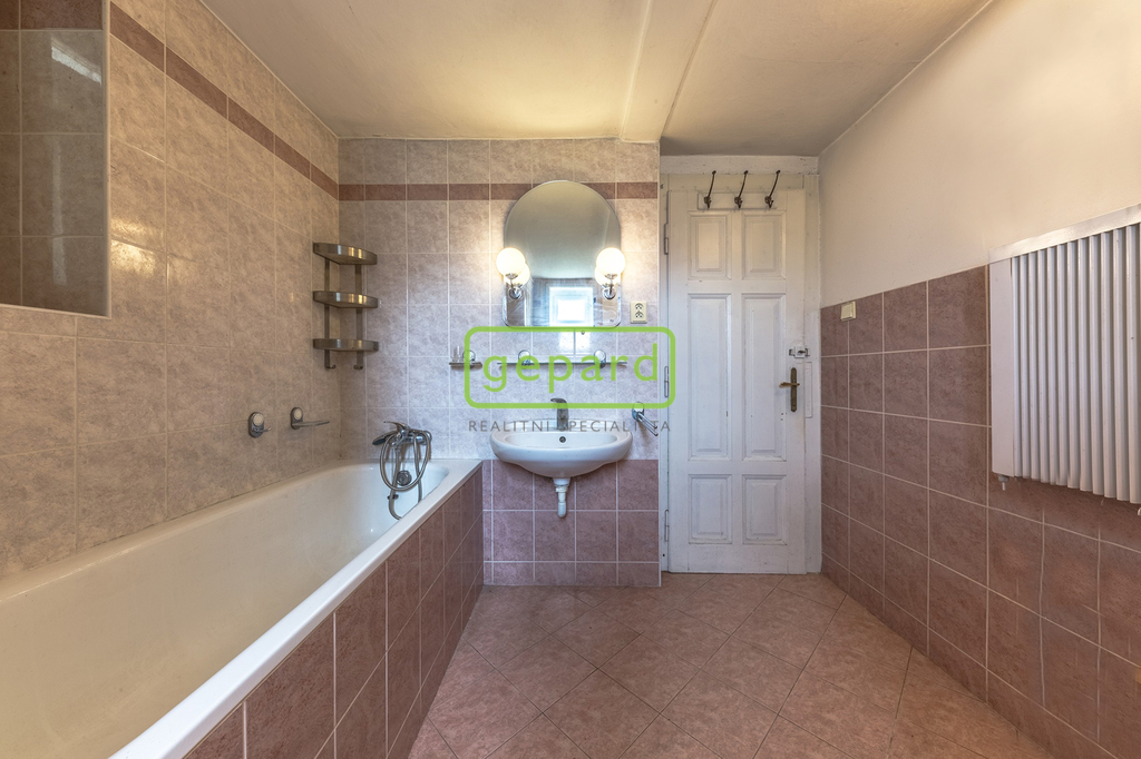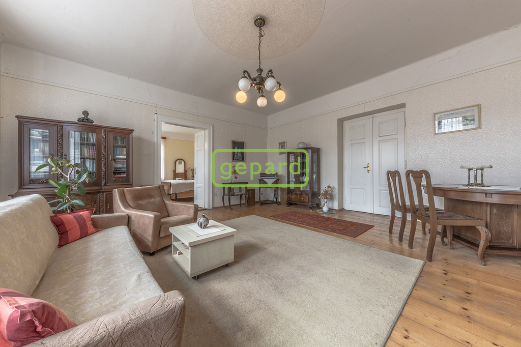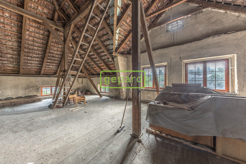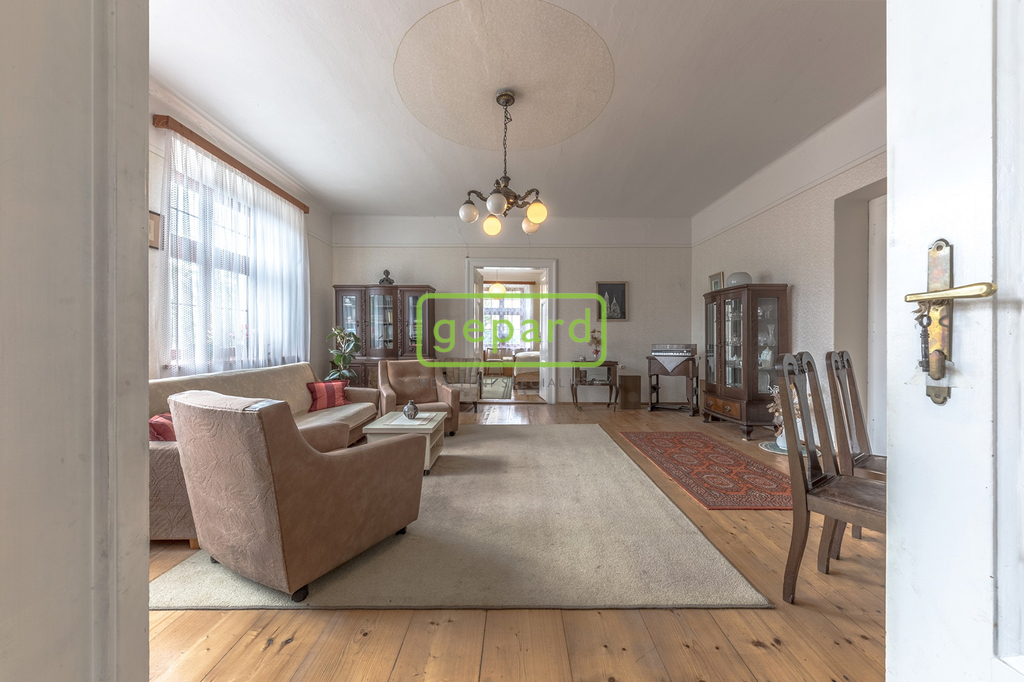 Rodinný dům 4+1 k rekonstrukci – obytná plocha přízemí činí prostorných 173 m². Dům byl postaven kolem roku 1918 na průtočných základech, má dřevěná okna a je částečně podsklepený (60 m² sklep).