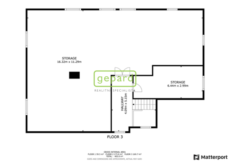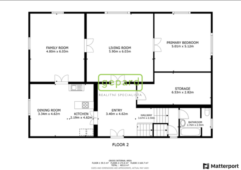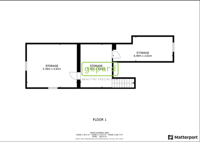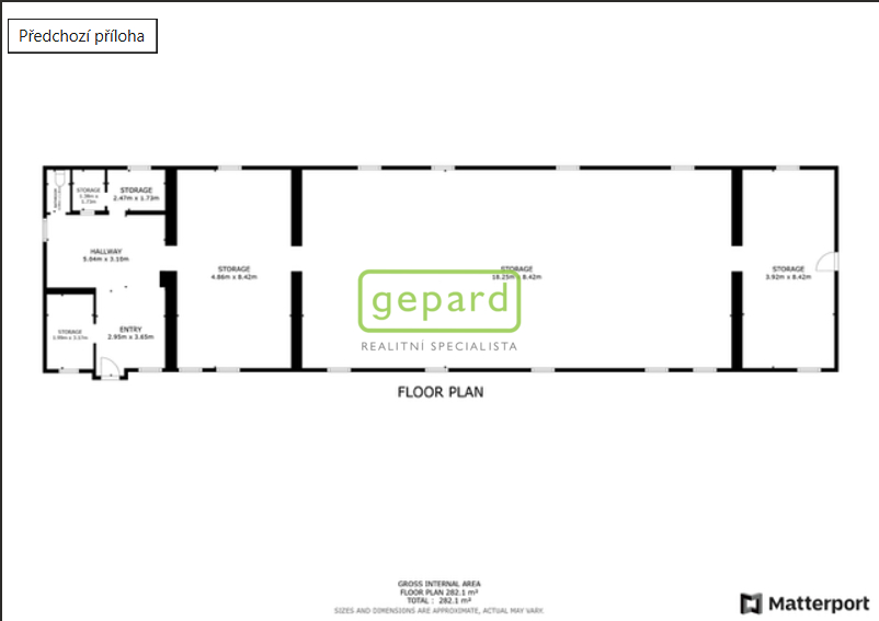 Poznámka: vedené výměry jsou orientaci, zdrojem je matterport Scan a podklady dodané majitelem