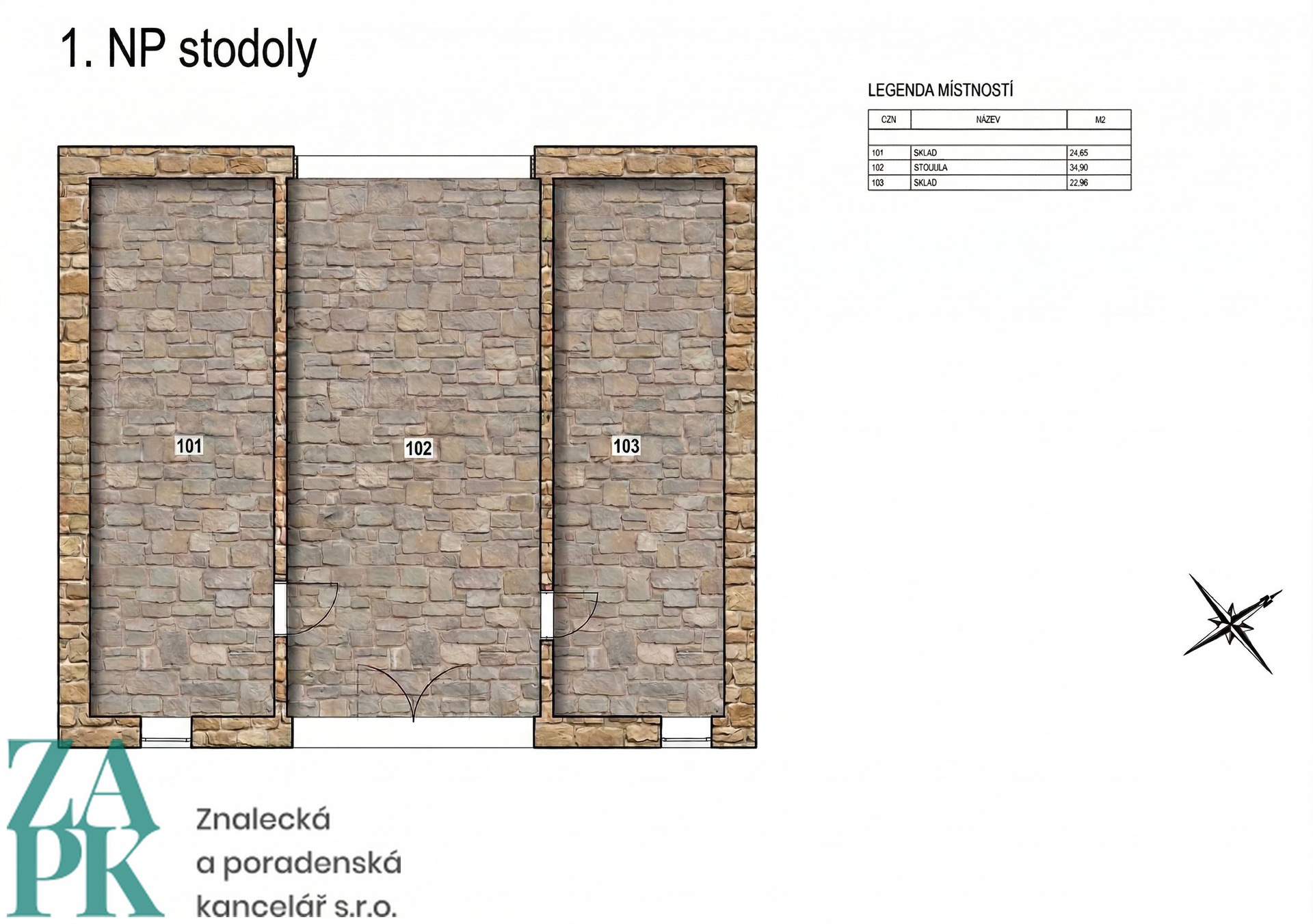 Celková podlahová plocha činí impozantních 427,34 m² ve které je obsažena i plocha stodoly 81,6 m² v přízemí a dalších 81,6 m² v podkroví ideální pro ateliér, dílnu nebo další skladovací prostory.