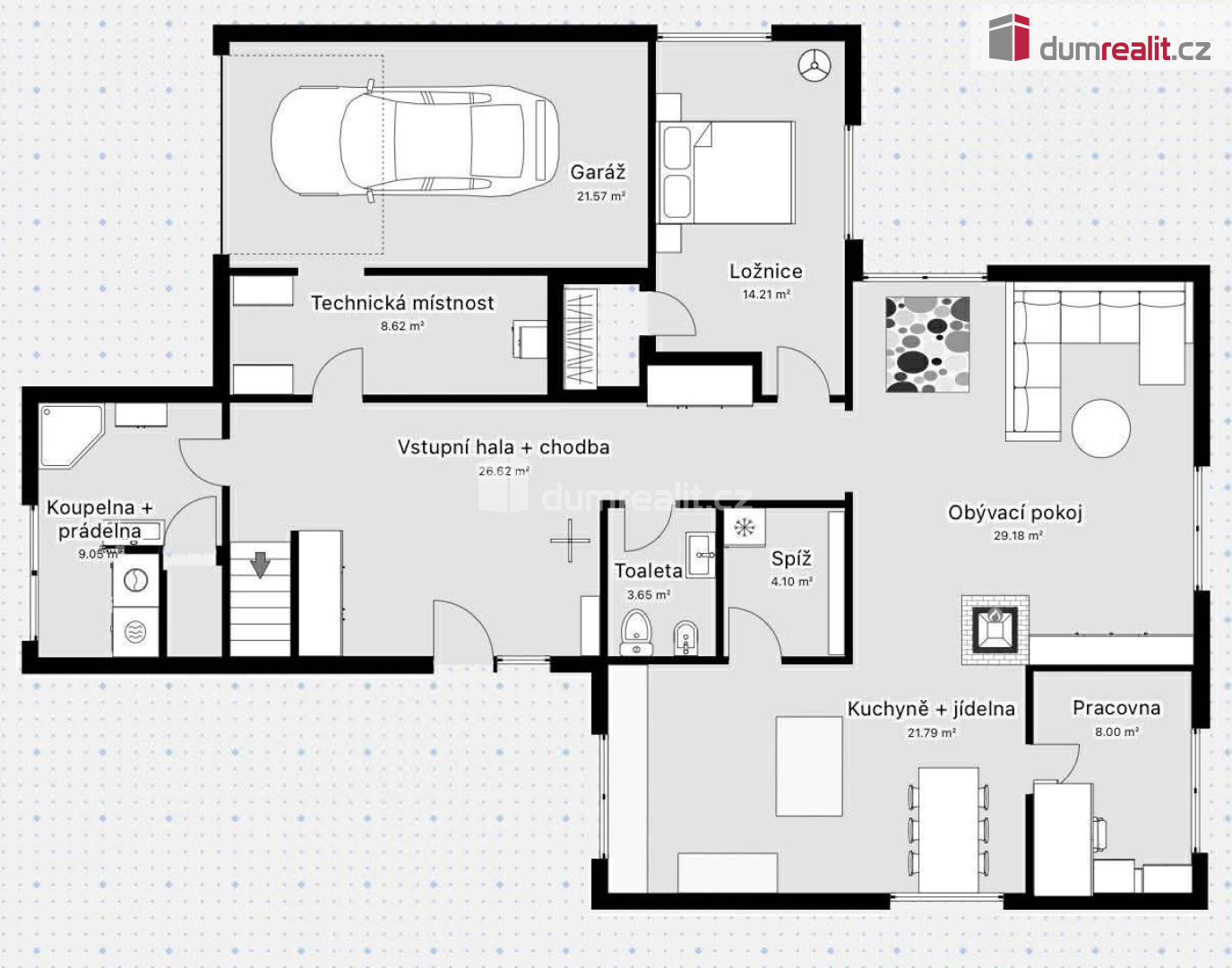 Naše společnost Vám zprostředkuje exkluzivní prodej dvoupodlažního rodinného domu situovaného v klidné rezidenční části obce Horky nad Jizerou o dispozici 6+kk s podlahovou plochou 208 m², situovaný na velkorysém pozemku o rozloze 1 506 m², který zajišťuje vysokou míru soukromí i komfortu a po menší úpravě je možné dům rozdělit na dvougenerační bydlení. Dům byl postaven v roce 2006 jako novostavba a dokončen v roce 2007 a od počátku byl navržen s důrazem na kvalitu, funkčnost a dlouhodobou hodnotu. Hlavní obytný prostor s krbem tvoří přirozené centrum domu a plynule navazuje na terasu orientovanou do zahrady, kde se nachází velký bazén s protiproudem a krytá terasa se sklo-hliníkovou pergolou, ideální pro celoroční využití. Otevřená kuchyně s ostrůvkem a vestavěnými spotřebiči nabízí dostatek pracovního i úložného prostoru a je přirozeným místem pro každodenní rodinný život i setkávání s přáteli. Dispozice domu je velmi praktická – v přízemí se nachází ložnice, pracovna, šatna, technická místnost a koupelna, v patře pak další tři ložnice, koupelna a šatna, přičemž patro není omezeno podkrovními šikminami a nabízí plnohodnotné využití prostoru. Dům je kvalitní zděnou stavbou z cihel Heluz se zateplením, má titanzinkovou střechu a byl dokončen s důrazem na detail – dřevěné podlahy, dlažby a obklady Villeroy & Boch, sanita Grohe. Vytápění a ohřev vody zajišťuje plynový kotel v kombinaci podlahového a radiátorového topení, dům je napojen na obecní vodovod, elektřinu, plyn a čističku odpadních vod (v brzké době dojde k napojení napřímo do obecní kanalizace), zároveň disponuje dvěma retenčními nádržemi na dešťovou vodu (2 × 12 m³), což výrazně snižuje provozní náklady a zvyšuje soběstačnost domu. Součástí nemovitosti je garáž, další parkovací místa na pozemku (vydlážděna dvě parkovací místa s přípravou na zastřešení), udržovaná moderní zahrada (zavlažovací systém nainstalovaný) s ovocnými stromy, domek s technickým zázemím pro bazén a oplocení zajišťující klid a soukromí. Lokalita Horky nad Jizerou nabízí ideální rovnováhu mezi klidným bydlením a výbornou dostupností – obec leží na půl cesty mezi Benátkami nad Jizerou a Mladou Boleslaví, s rychlým napojením na dálnici D10 (sjezd Brodce), Praha – Černý Most je vzdálena přibližně 20 minut jízdy, Mladá Boleslav zhruba 10 minut. Nemovitost je připravena k okamžitému nastěhování a představuje atraktivní volbu pro klienty, kteří hledají kvalitní rodinné bydlení s nadstandardním pozemkem, technickým zázemím a dlouhodobou hodnotou. Cena je s provizí RK. Provize RK zahrnuje veškerý právní servis včetně zajištění advokátní úschovy kupní ceny a podání návrhu na vklad do KN. Hypotéční specialista v RK. Ev. číslo: 654640.
