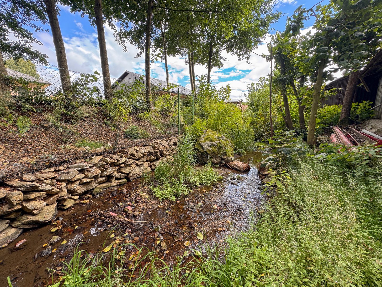 • po hranici pozemku protéká potůček