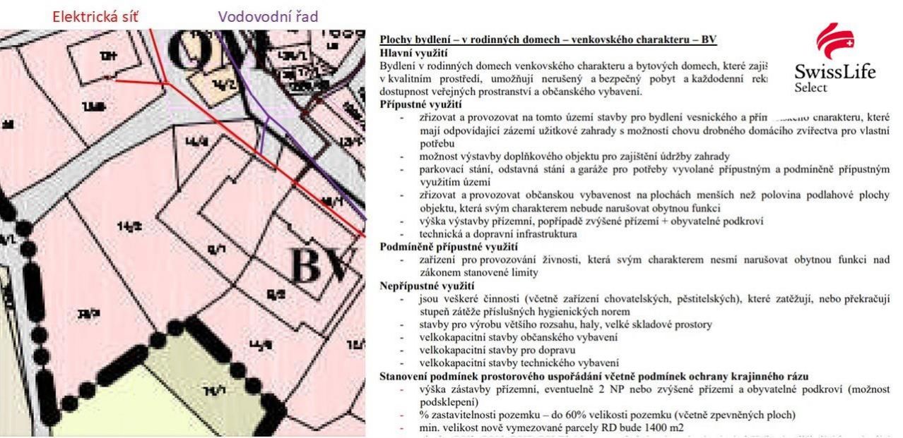 Pozemek je určen k výstavbě domu venkovského typu či menšího bytového domu, možné je