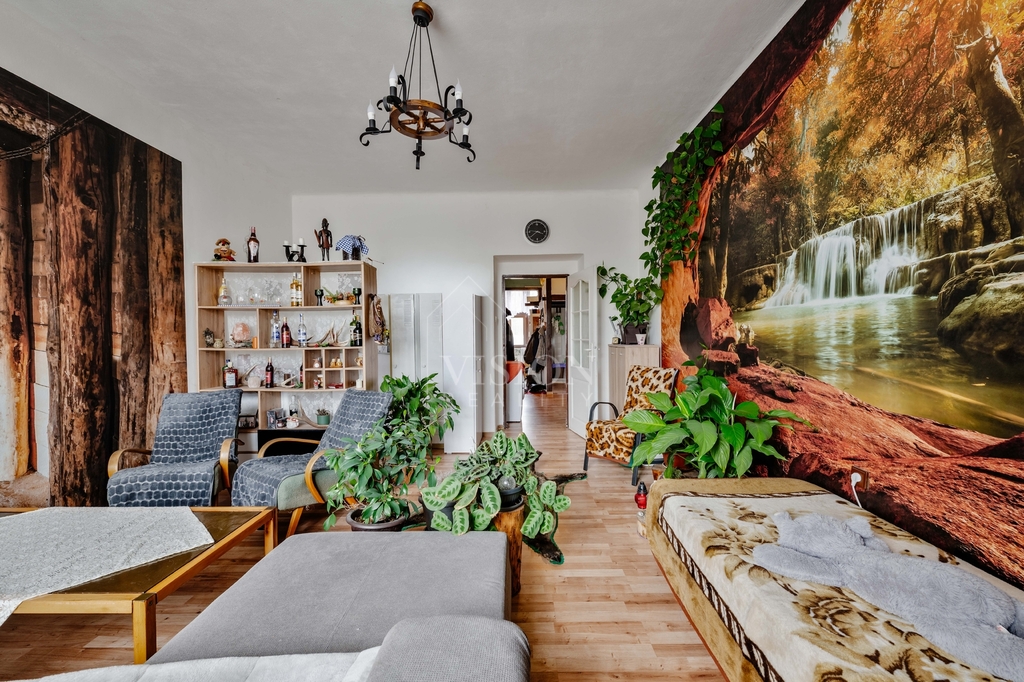 Byt se nachází v prvním podlaží prvorepublikové vily a v uplynulých letech prošel postupnou rekonstrukcí. Byly provedeny nové rozvody elektřiny v mědi, vody v plastu, nové podlahy, úprava koupelny i výměna oken za plastová. Dispozice nabízí prostorný obývací pokoj propojený s jídelnou a kuchyní, samostatný pokoj, chodbu se spižírnou, koupelnu a samostatné WC. Celek působí vzdušně, prakticky a nabízí příjemné bydlení bez nutnosti zásadních okamžitých investic.