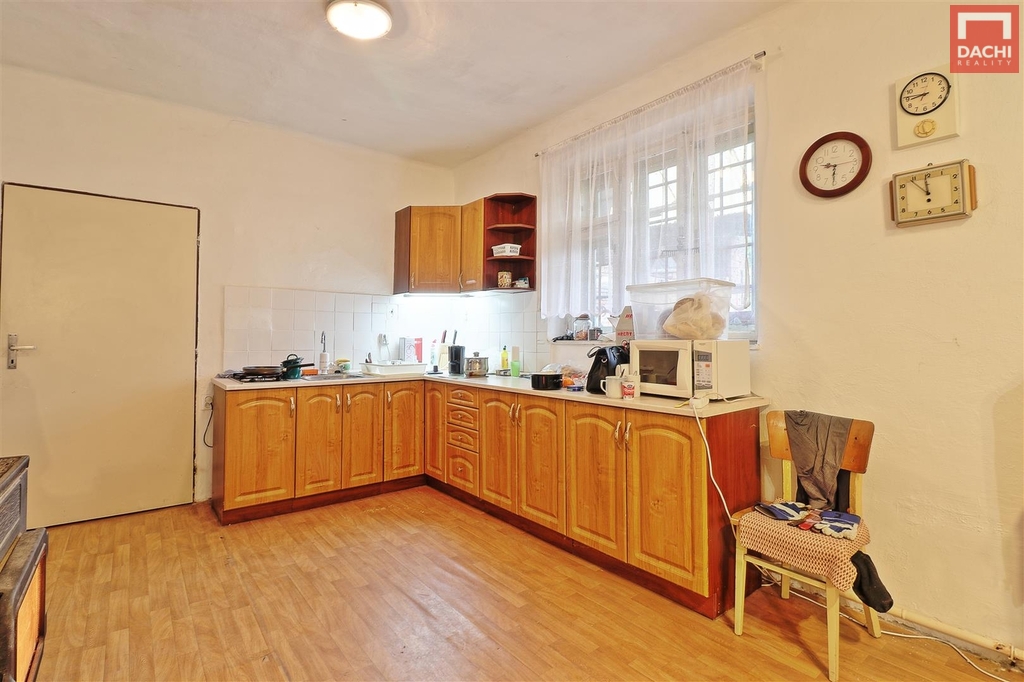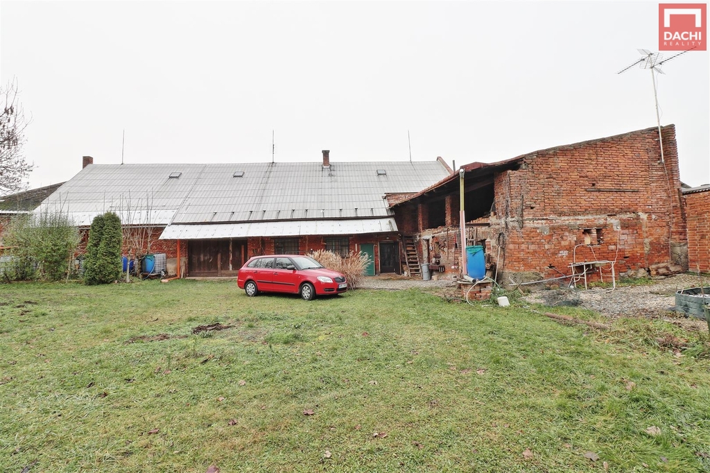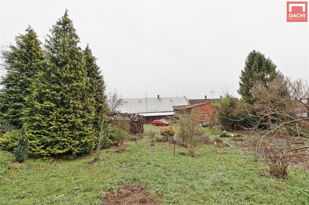 Nabízíme k prodeji řadový, jednopodlažní a částečně podsklepený, rodinný dům, který byl zemědělskou usedlostí. Nemovitost se skládá z bytové jednotky 3+kk, velké stodoly... nyní užívána i jako garáž, dílny a menších skladů. Je v původním, udržovaném, plně funkčním stavu, ovšem určená k rekonstrukci. Střešní krytina je plechová, část z eternitových šablon a část z PVC vlnovky. Podlahy jsou původní prkenné bez hydroizolace, betonové, PVC, keramická dlažba. Okna jsou dvojitá dřevěná, jednoduchá ocelová, dveře jsou původní dřevěné. Dům, ani střecha jsou nezateplené . Dům je napojen na všechny inženýrské sítě, el, plyn, obecní voda, kanalizace, vlastní studna. Na dvoře se nachází i zděná dílna, nepodsklepená, jednopodlažní se sedlovou střechou, do které již trochu zatéká. Vrata jsou dřevěná, okno dřevěné kastlové a ocelové jednoduché. V dílně nejsou inženýrské sítě. Pozemky jsou dlouhodobě využívány jako zahrada a jsou osázeny mnoha ovocnými ( jabloně, švestky) i okrasnými keři ( ibišek, rododendron, magnolie) i stromy. Nacházejí se zde i více než stoleté stromy ( jasan, ořech ) celkem cca 70 stromů a keřů. Především zahrada nabízí a poskytuje úžasné soukromí, možnost relaxace a klidu.