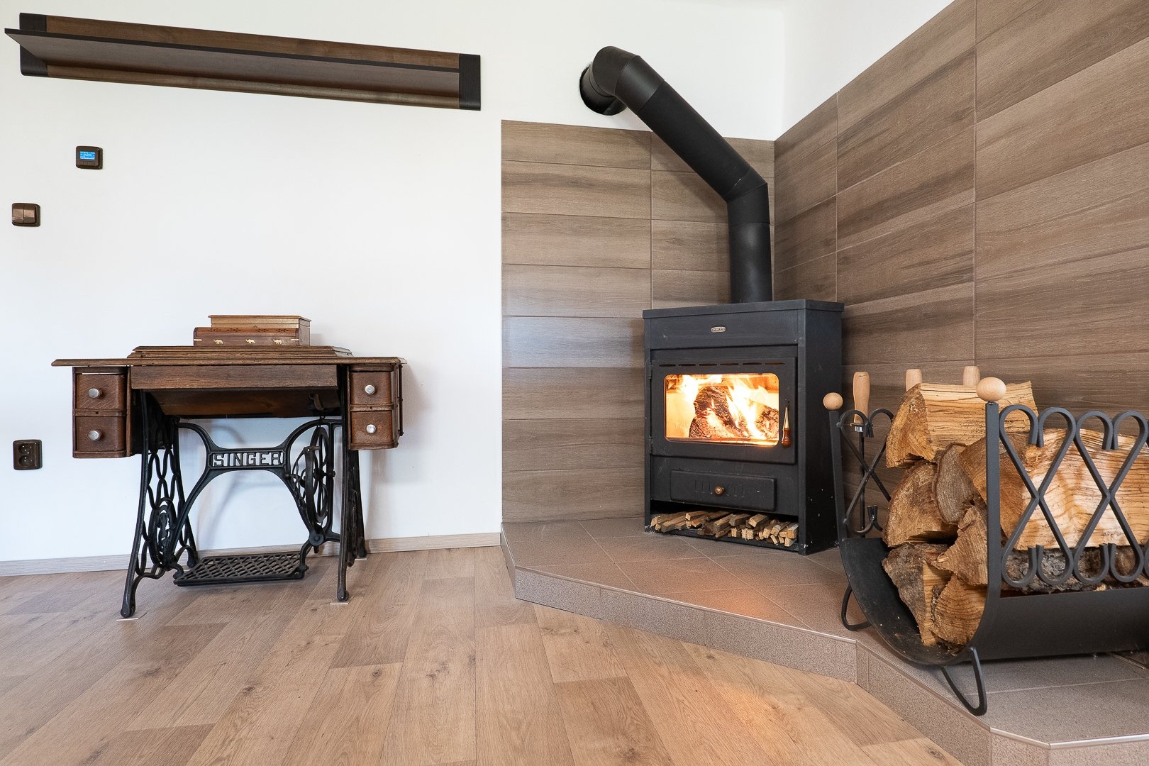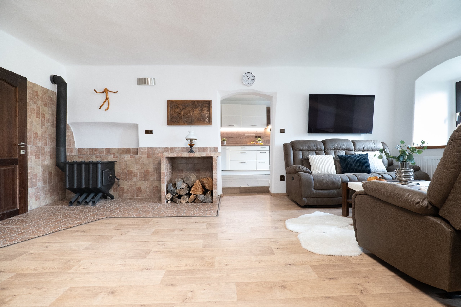 - centrální komín, v obou patrech krbová kamna