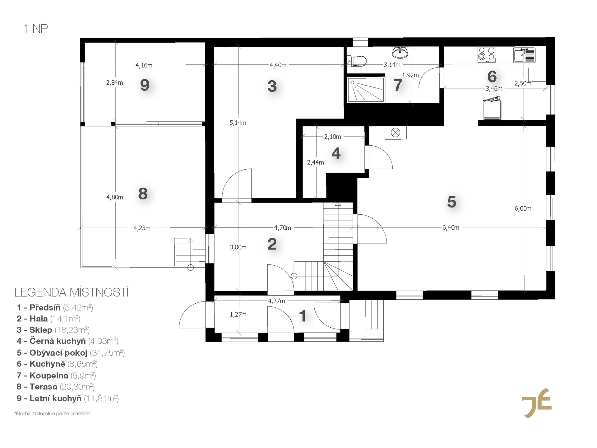 - sklep (18 m²) s klenutým stropem a historickými prvky