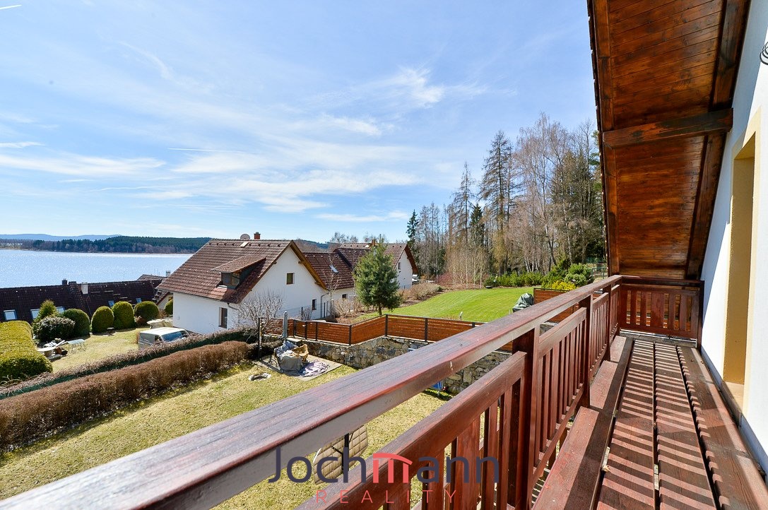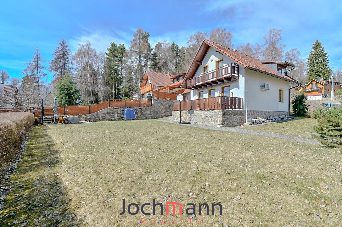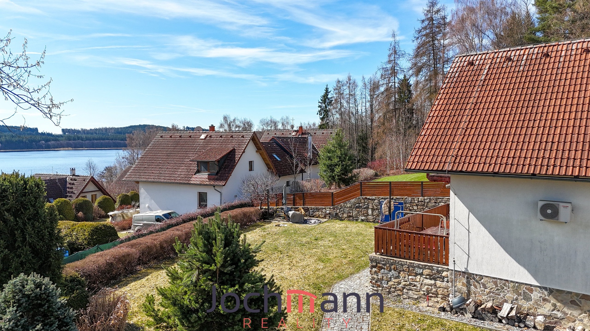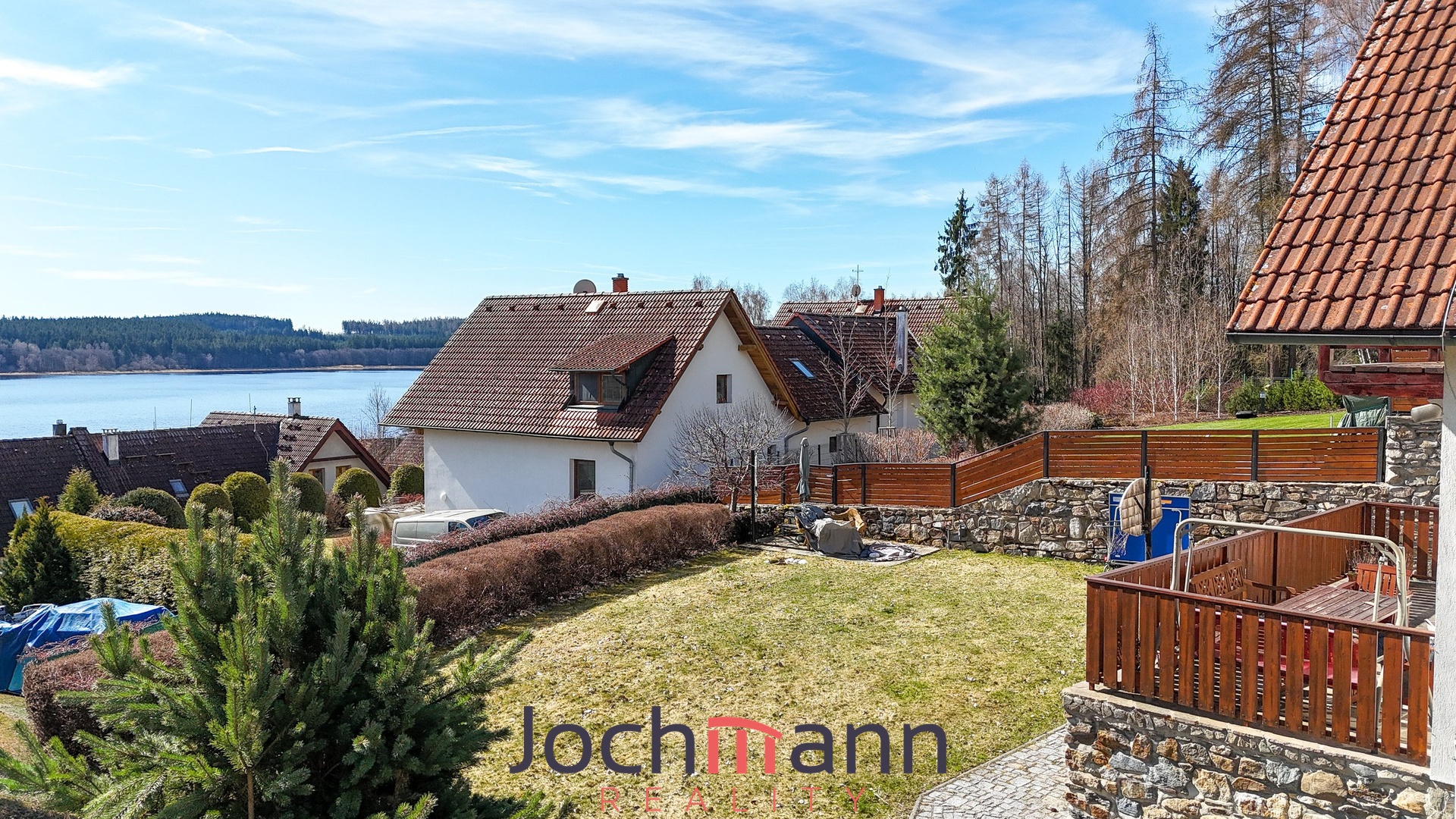 V příjemné dojezdové vzdálenosti se dále nachází lyžařské středisko Kramolín, Hochficht, běžecké stopy, koridor na zimní bruslení při zámrzu přímo v místě a mnoho dalšího sportovního vyžití. Příjezd k nemovitosti je možný přes vlastní příjezdovou zpevněnou komunikaci a celá okrasná zahrada disponuje příjemnými výhledy na jezero. Vnitřní dispozice domu pak nabízí v přízemí budovy garáž, předsíň s technickou místností, koupelnu s toaletou, pračkou a sprchovým koutem a velkoryse prostornou hlavní obytnou místnost s částečně oddělenou kuchyní a výstupem na terasu s výsuvným zastřešením. V podkroví se pak nachází druhá koupelna s vanou a WC a tři samostatné, neprůchozí a dobře prostorově řešené ložnice. Z jedné z nich je následně řešený vstup na balkon s krásným výhledem.