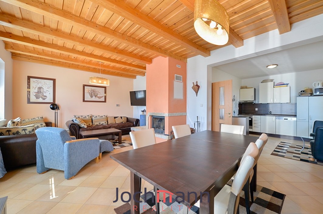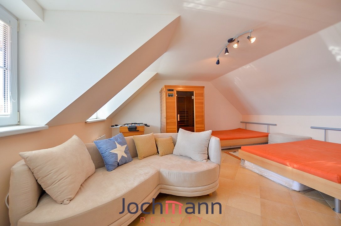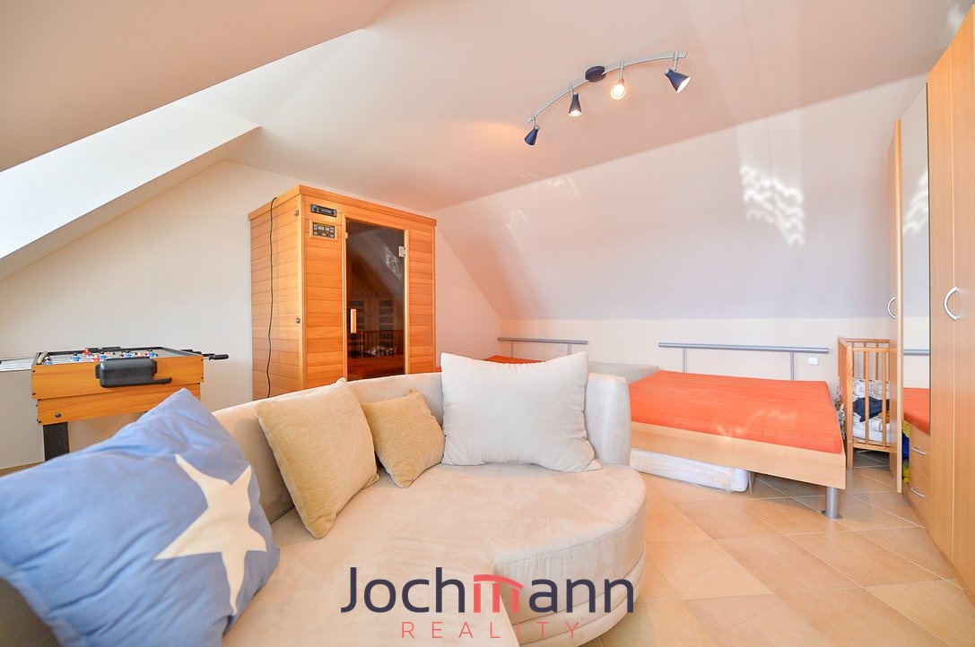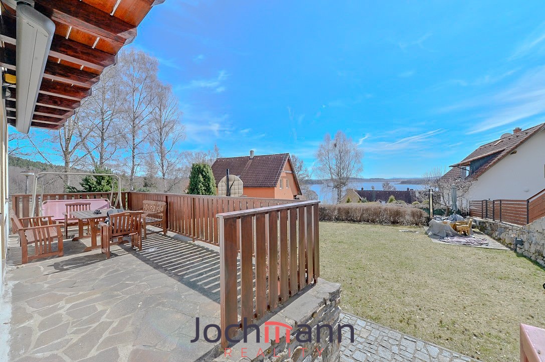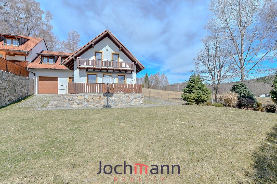 V příjemné dojezdové vzdálenosti se dále nachází lyžařské středisko Kramolín, Hochficht, běžecké stopy, koridor na zimní bruslení při zámrzu přímo v místě a mnoho dalšího sportovního vyžití. Příjezd k nemovitosti je možný přes vlastní příjezdovou zpevněnou komunikaci a celá okrasná zahrada disponuje příjemnými výhledy na jezero. Vnitřní dispozice domu pak nabízí v přízemí budovy garáž, předsíň s technickou místností, koupelnu s toaletou, pračkou a sprchovým koutem a velkoryse prostornou hlavní obytnou místnost s částečně oddělenou kuchyní a výstupem na terasu s výsuvným zastřešením. V podkroví se pak nachází druhá koupelna s vanou a WC a tři samostatné, neprůchozí a dobře prostorově řešené ložnice. Z jedné z nich je následně řešený vstup na balkon s krásným výhledem.
