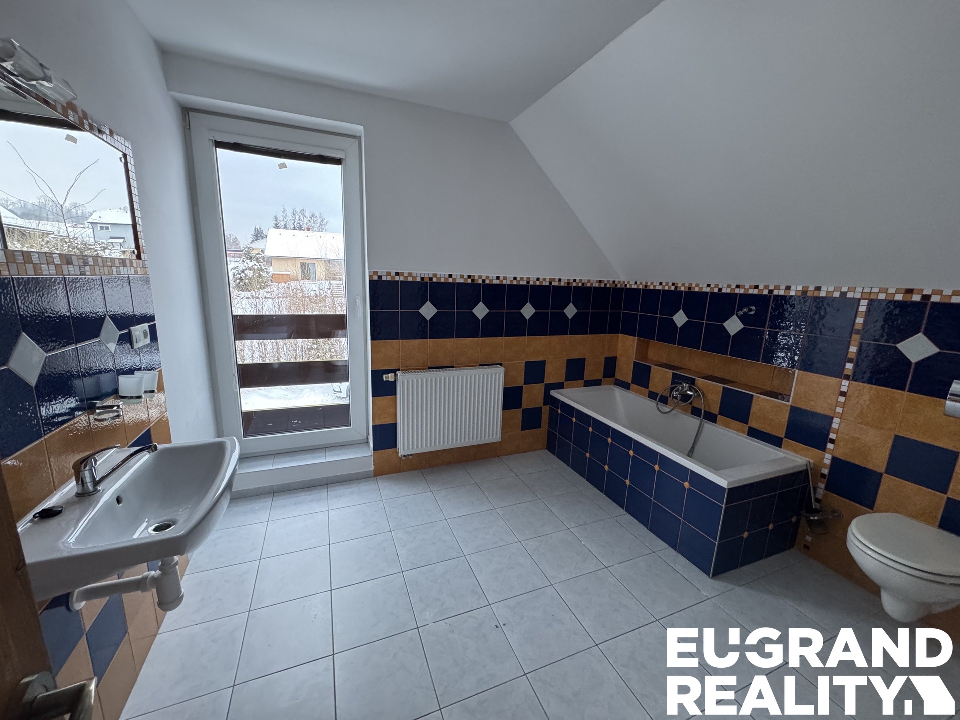 Dvě moderní koupelny s toaletou – jedna v přízemí pro každodenní pohodlí, druhá v patře pro soukromí.