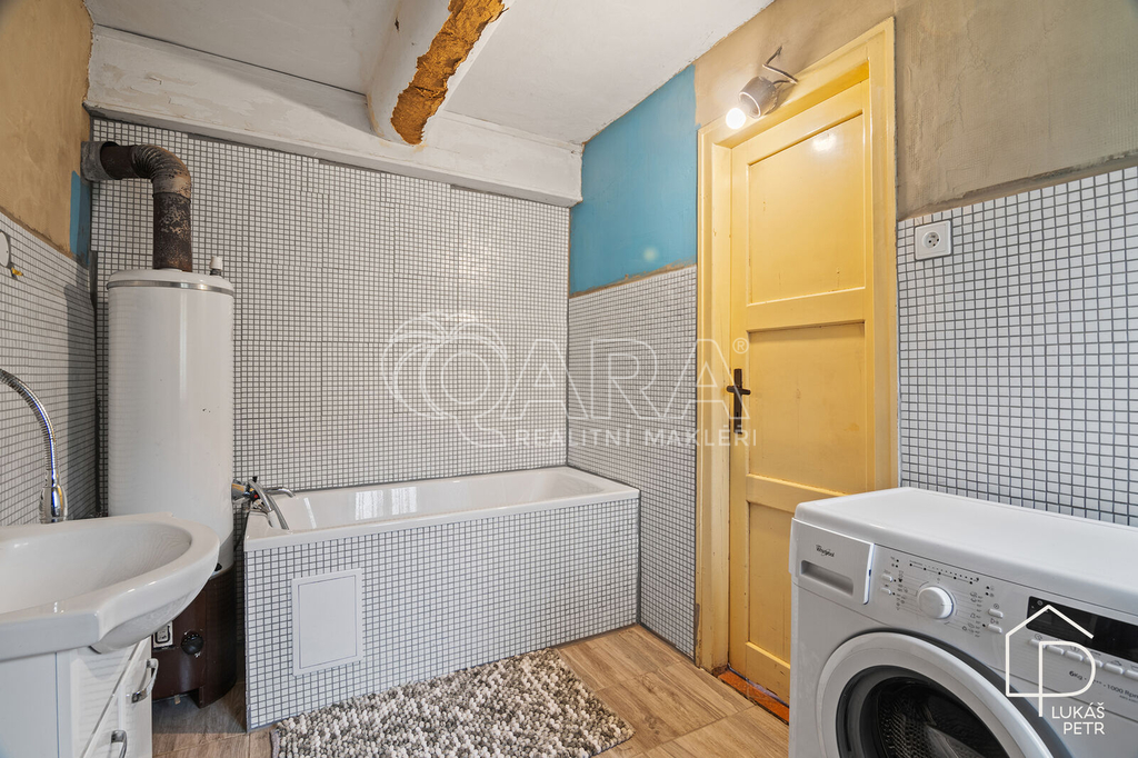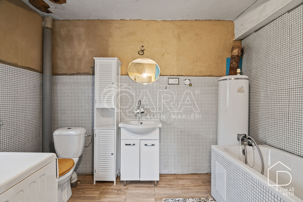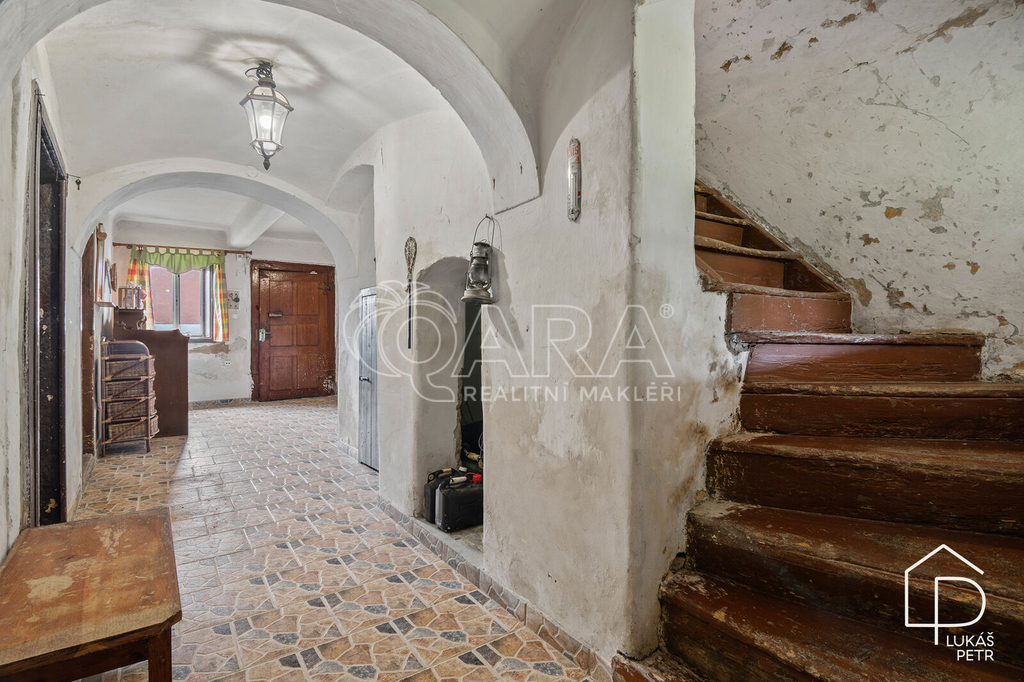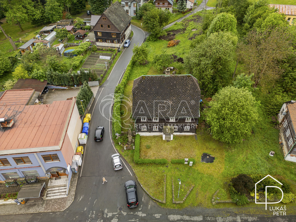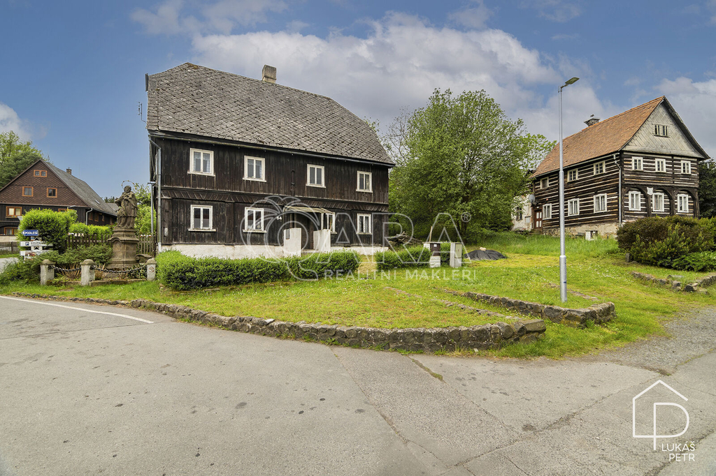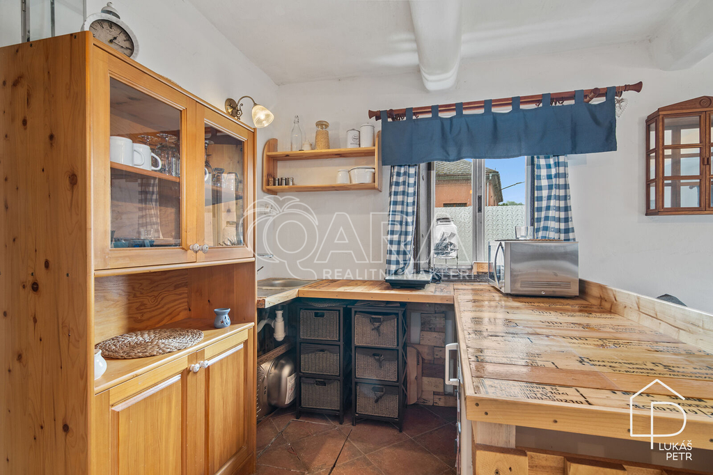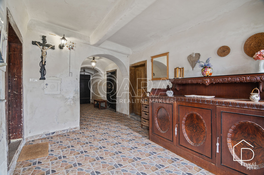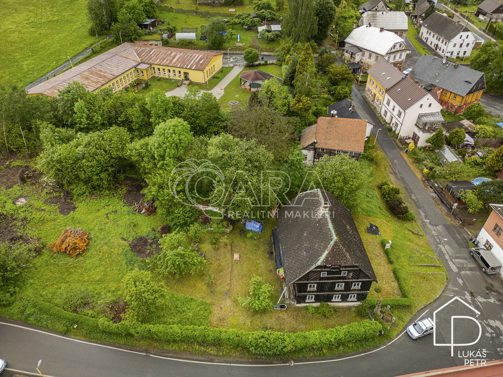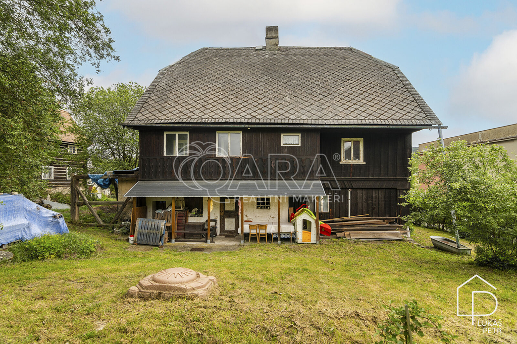 Chalupa stojí na pozemku s výměrou 720 m2 a nabízí dispozici 6+1.