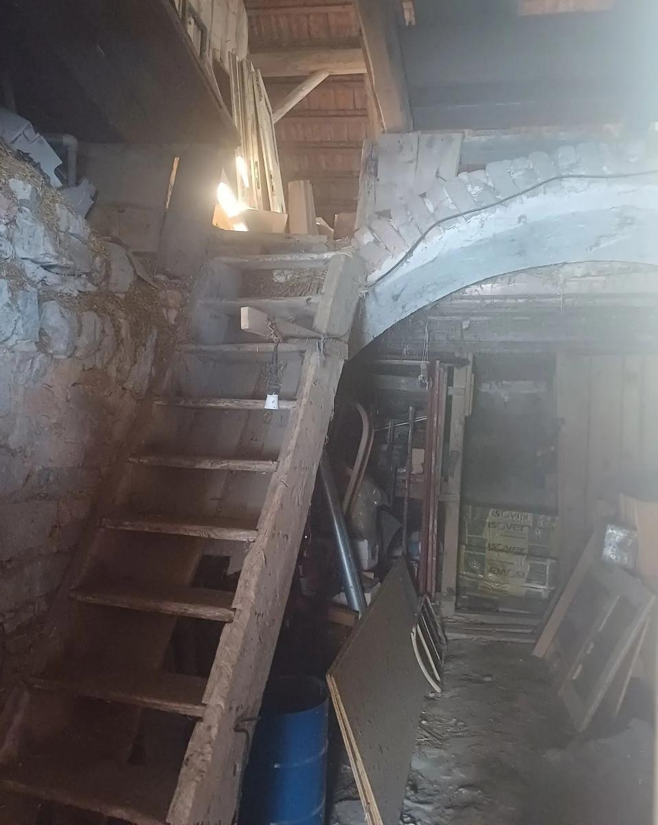 Stará část domu je původní zemědělské stavení, má stáří cca 150 let a výměru cca 200 m2, není obývaná, má kamenné základy, vstup z nové části je přes vstupní předsíň, odkud je vstup do komory, bývalé kuchyně, pokoje, komory a pracovny, dále do stodoly, kde se chovaly domácí zvířata, je zde přízemní sklep s klenutými stropy, je odtud vstup na půdu po původních dřevěných schodech a nachází se zde prosklená veranda s velkým krbem, kde se ukládá zahradní nábytek, nářadí. Stodola je původní, s opadávajícími omítkami, nezaizolovaná, slouží jako skladiště.