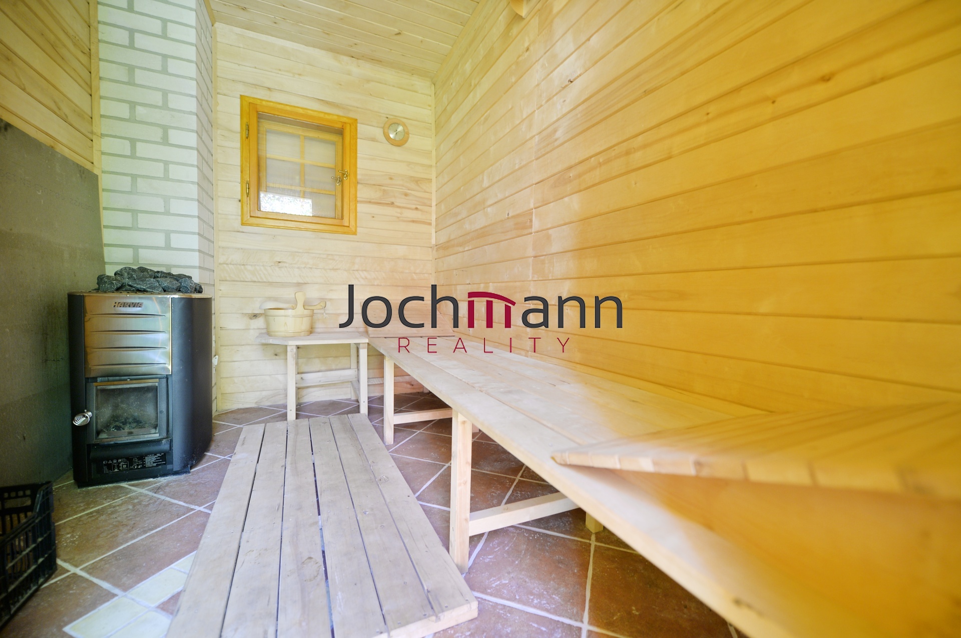 Za chalupou je prostorná zahrada na které se mimo jiné nachází skvělá sauna a dílna, kterou lze také využít jako letní kuchyni. Na celém pozemku i v chalupě je nádherný, ničím nerušený klid.