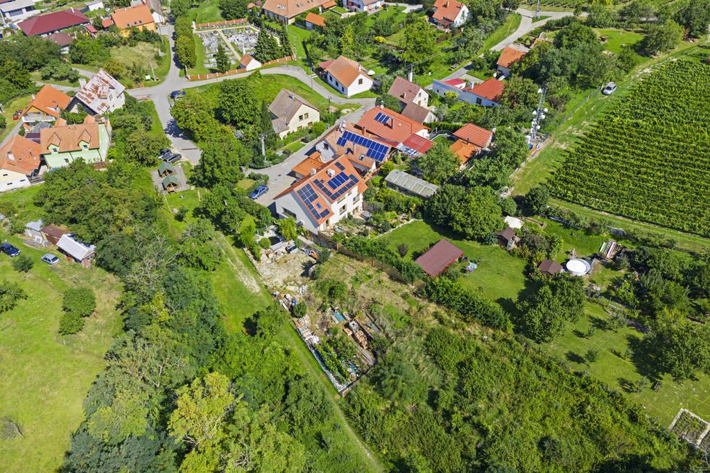 Součástí pozemku je stávající vinný sklep, který je již napojen na elektřinu a dále je na pozemku hlubinný vrt vody [s povolením]. Připojení na vodovod a kanalizaci je možné v místě obecní komunikace cca 30m od hranice.