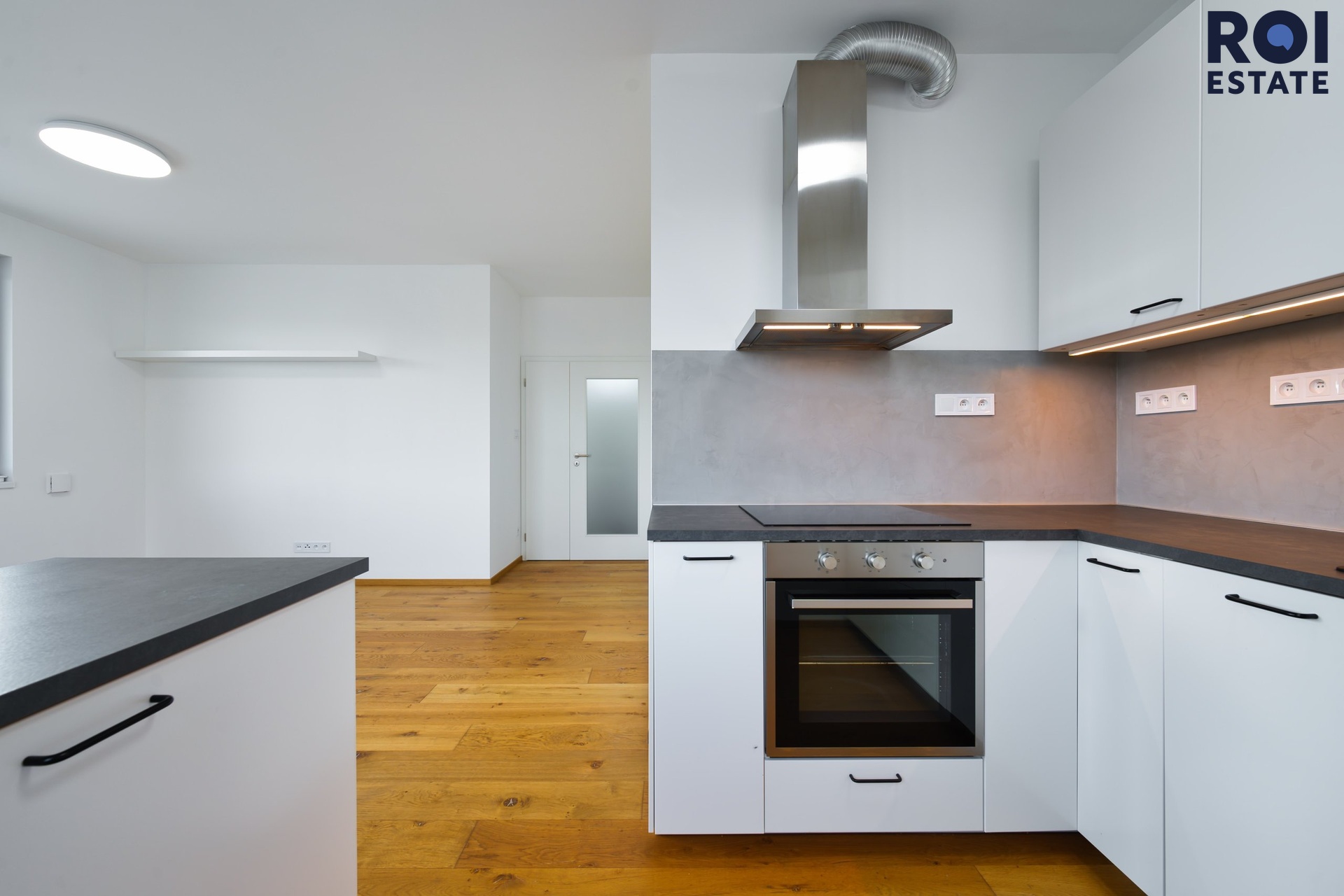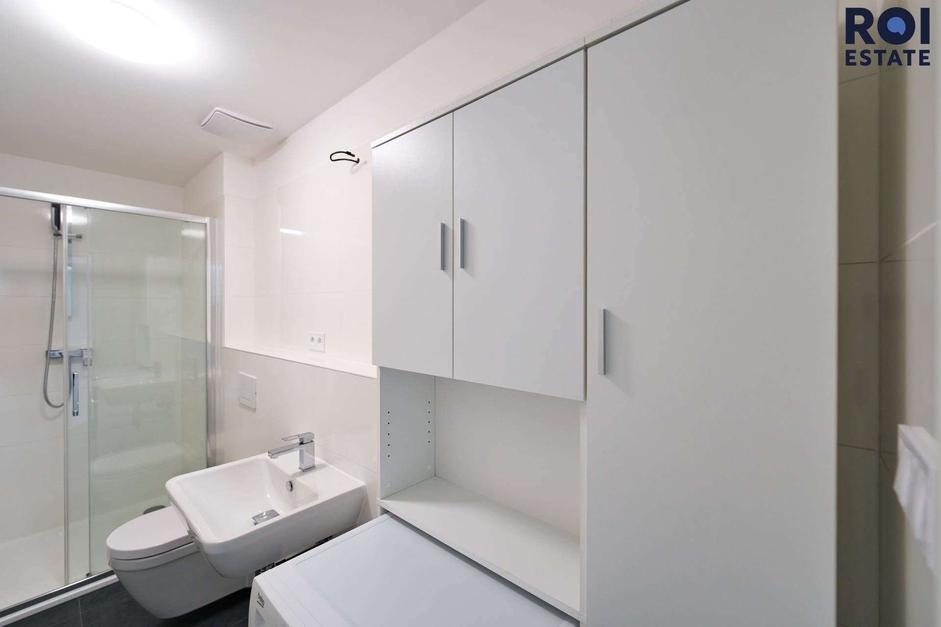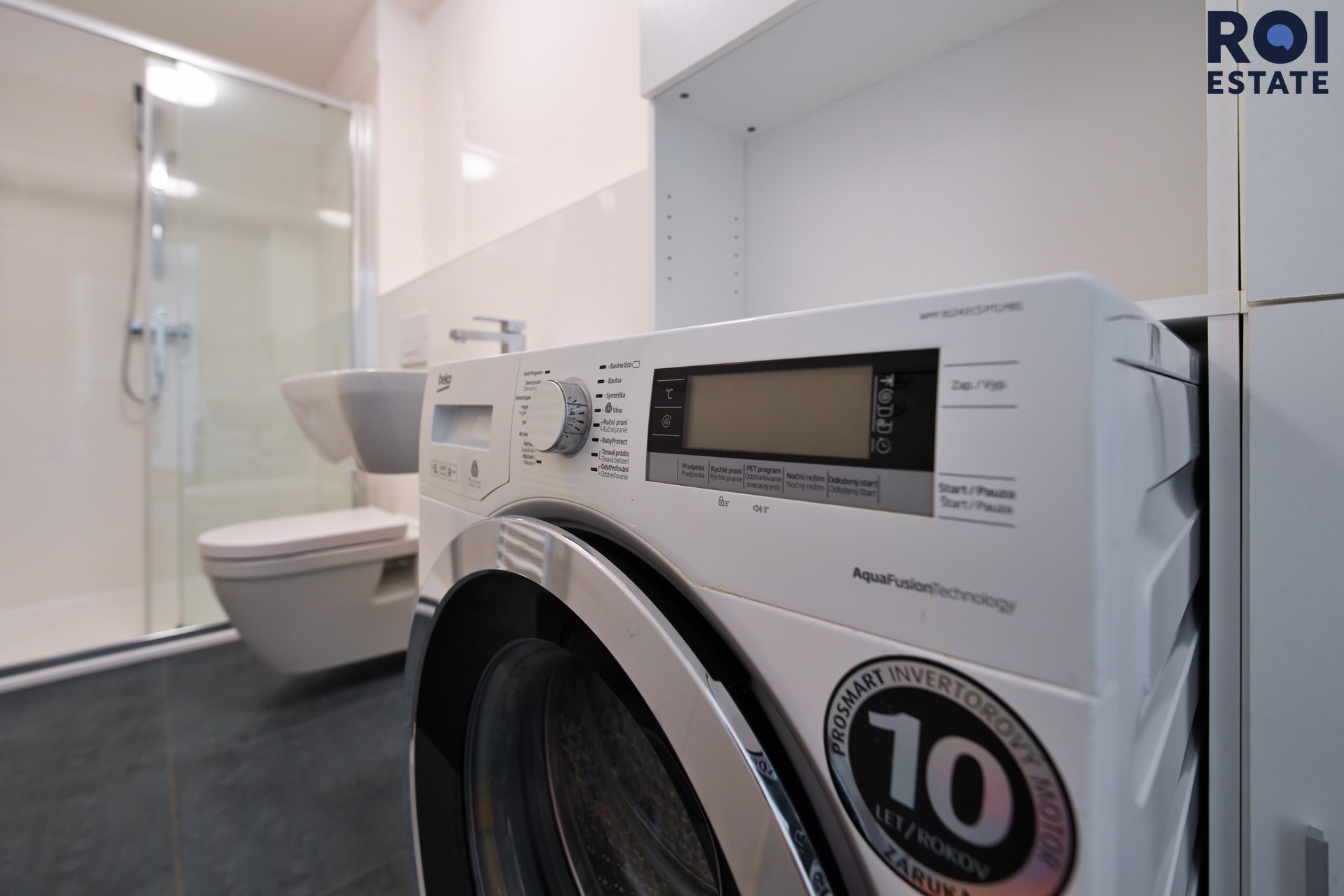 Byt je vybaven moderní kuchyňskou linkou s vestavěnými spotřebiči včetně myčky, lednice s mrazákem, elektrické trouby a indukční varné desky. Ve dvou koupelnách naleznete sprchový kout a toaletu. Prostorná chodba je vybavena vestavěnou skříní poskytující spoustu úložného prostoru.
