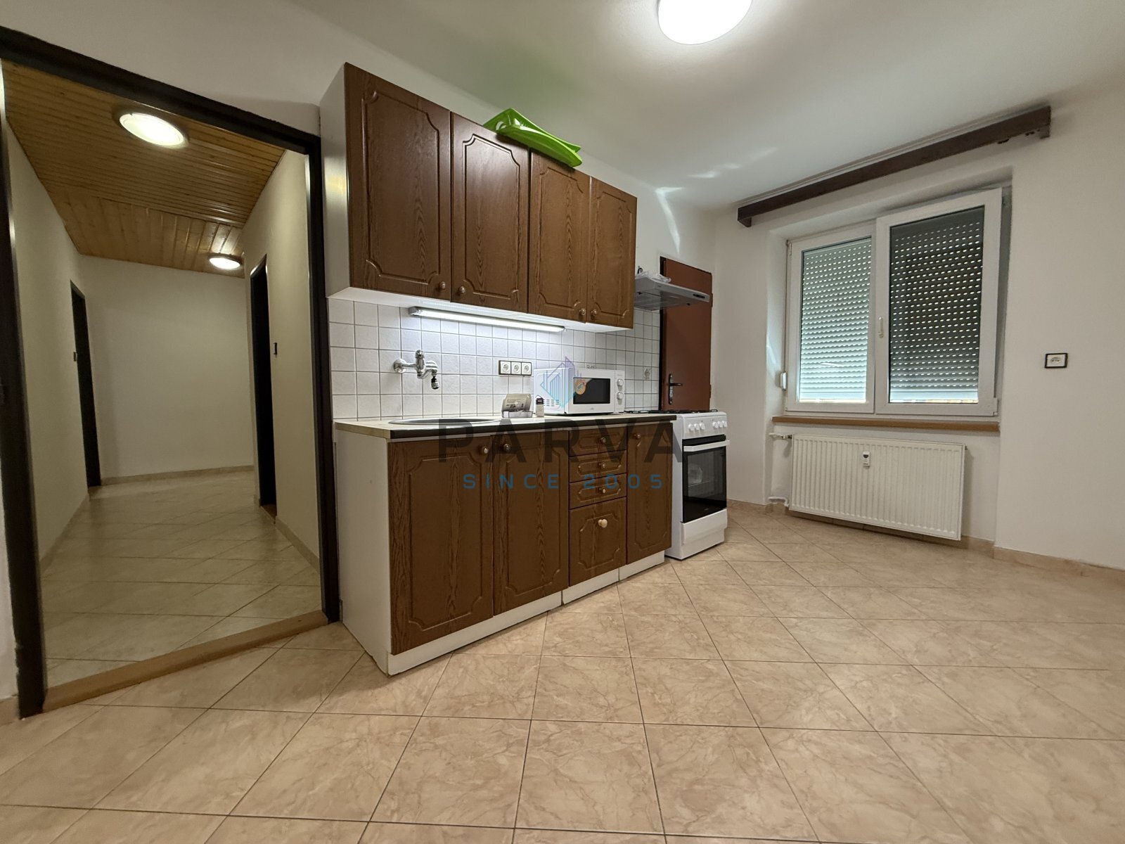 Byt se skládá z kuchyně, dvou neprůchozích pokojů, koupelny, toalety a komory a prošel částečnou modernizací. Součástí kuchyně je linka s kombinovaným sporákem.