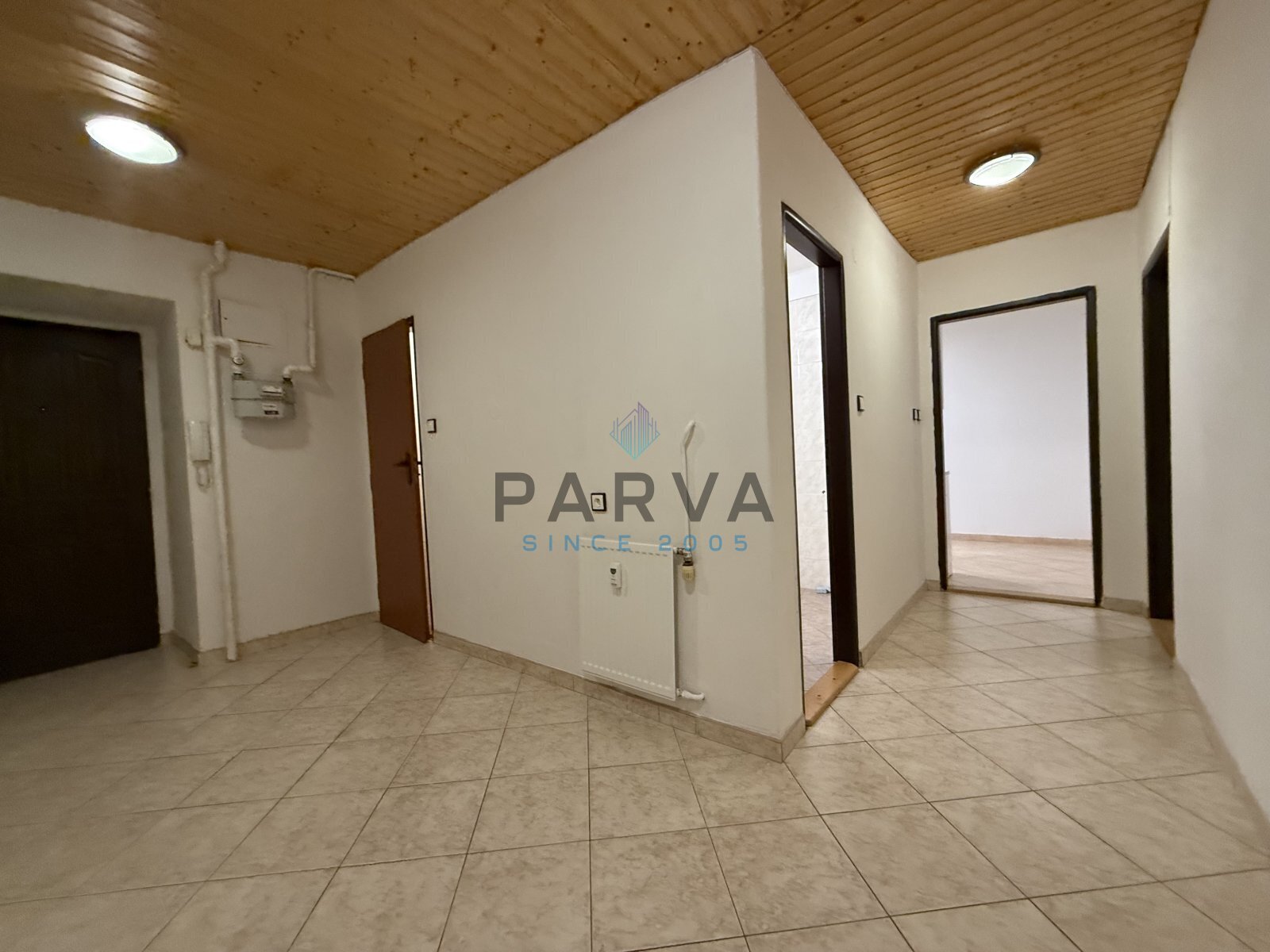 Vytápění je řešeno dálkově, ohřev TUV elektrickým bojlerem.