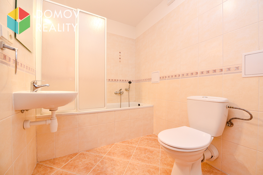 Koupelna je vybavena vanou, umyvadlem a WC.