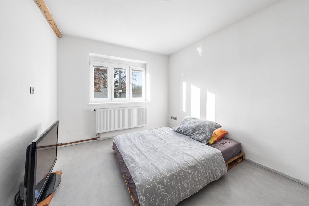 Naproti rodinnému domu se nachází stavba bývalého chléva s jedním nadzemním podlažím a podkrovím. Objekt je v dobrém stavu, průběžně udržovaný a aktuálně slouží jako sklad a zázemí pro zvířata. V zadní části pozemku stojí stodola, jejíž součástí je vestavěná garáž a několik menších skladových prostor. Předmětem prodeje jsou však pouze dvě třetiny této stavby, jelikož část přesahující na sousední pozemek je ve vlastnictví souseda. Stodola je vnitřně rozdělena příčkou a zároveň slouží jako průchod na zbývající část zahrady. Součástí prodeje je dále také garáž, umístěná uprostřed zahrady na hranici pozemku.