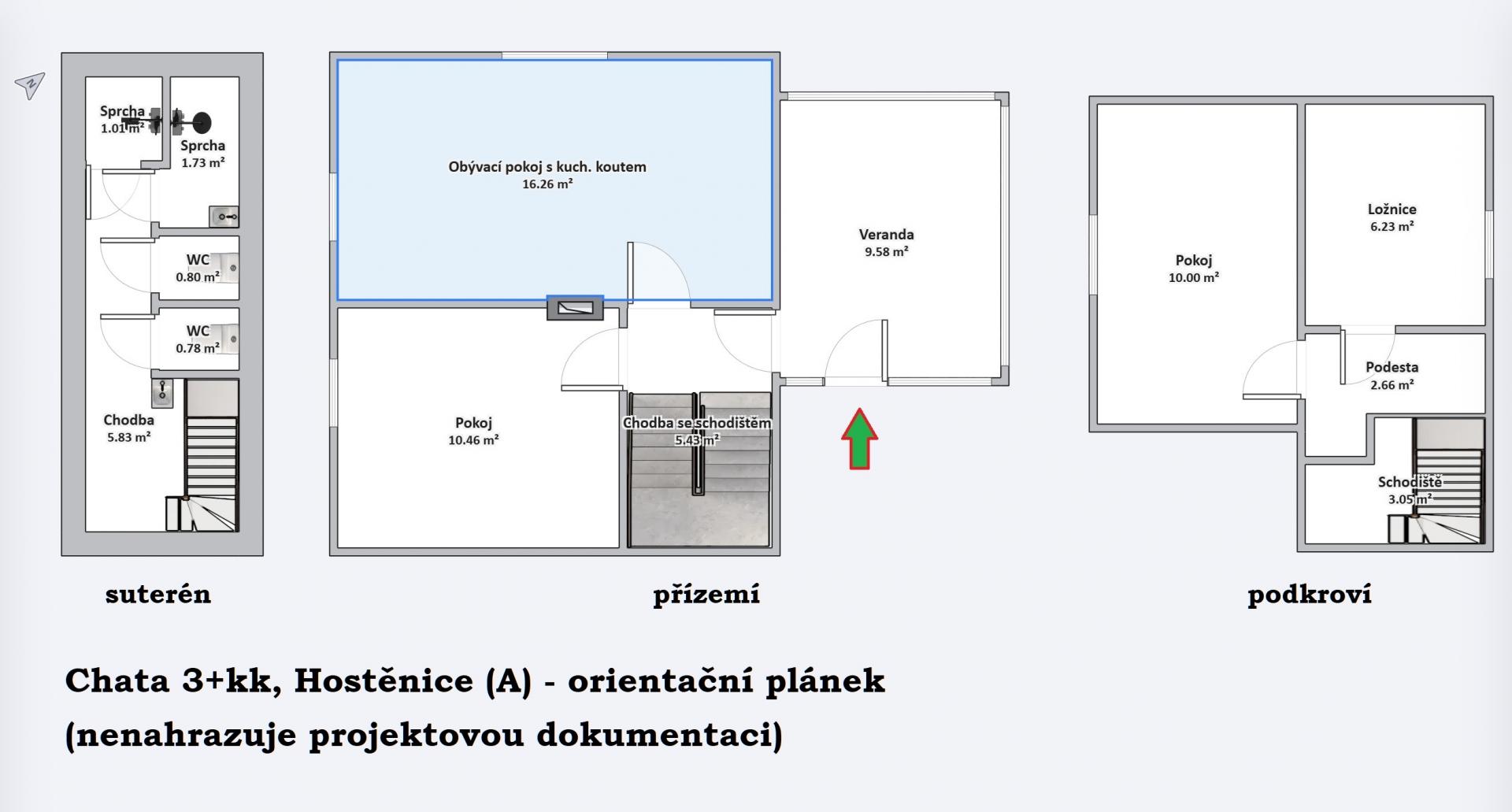 Chata 3+kk s č.ev., v Hostěnicích o ploše 74 m2, pozemek 223 m2