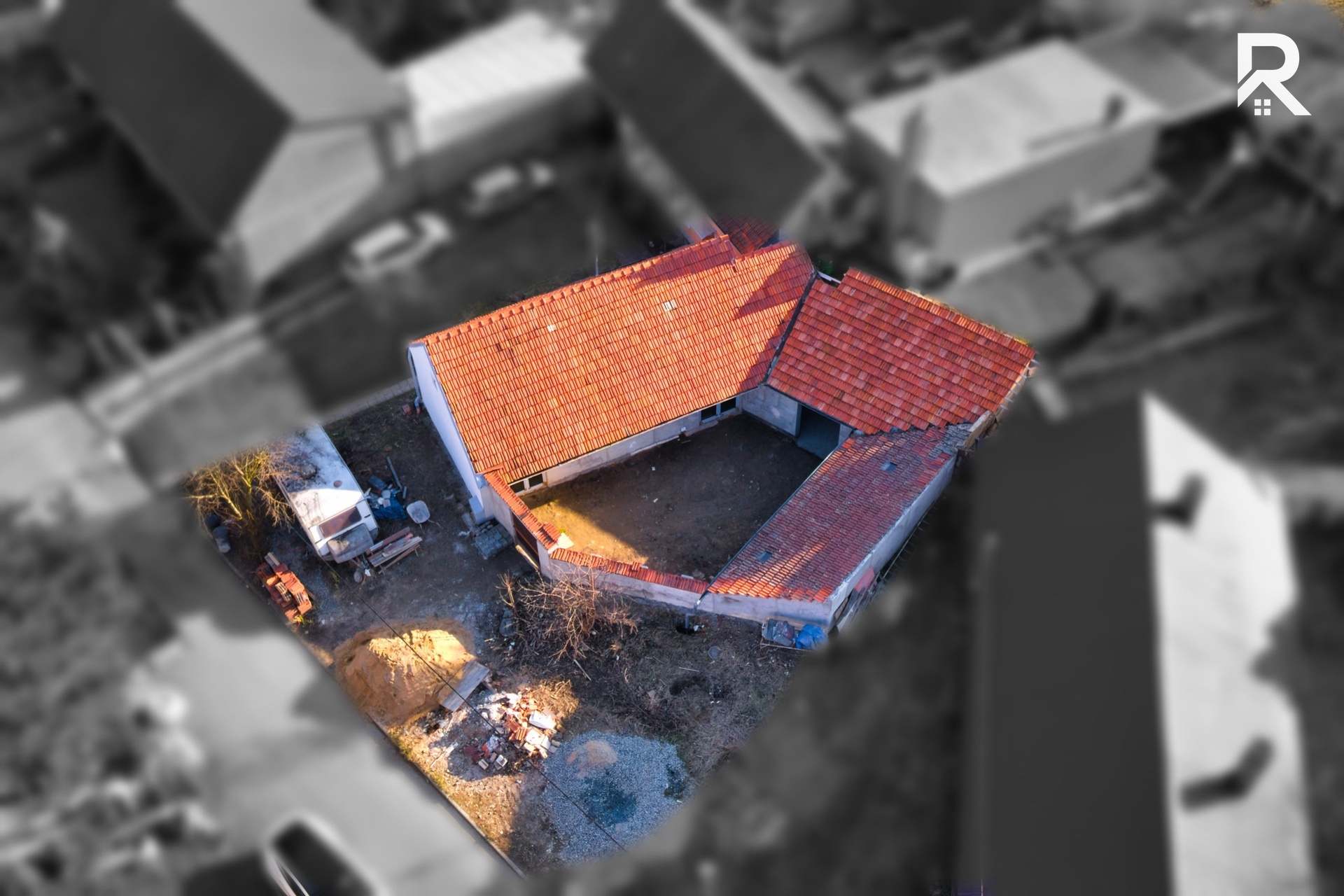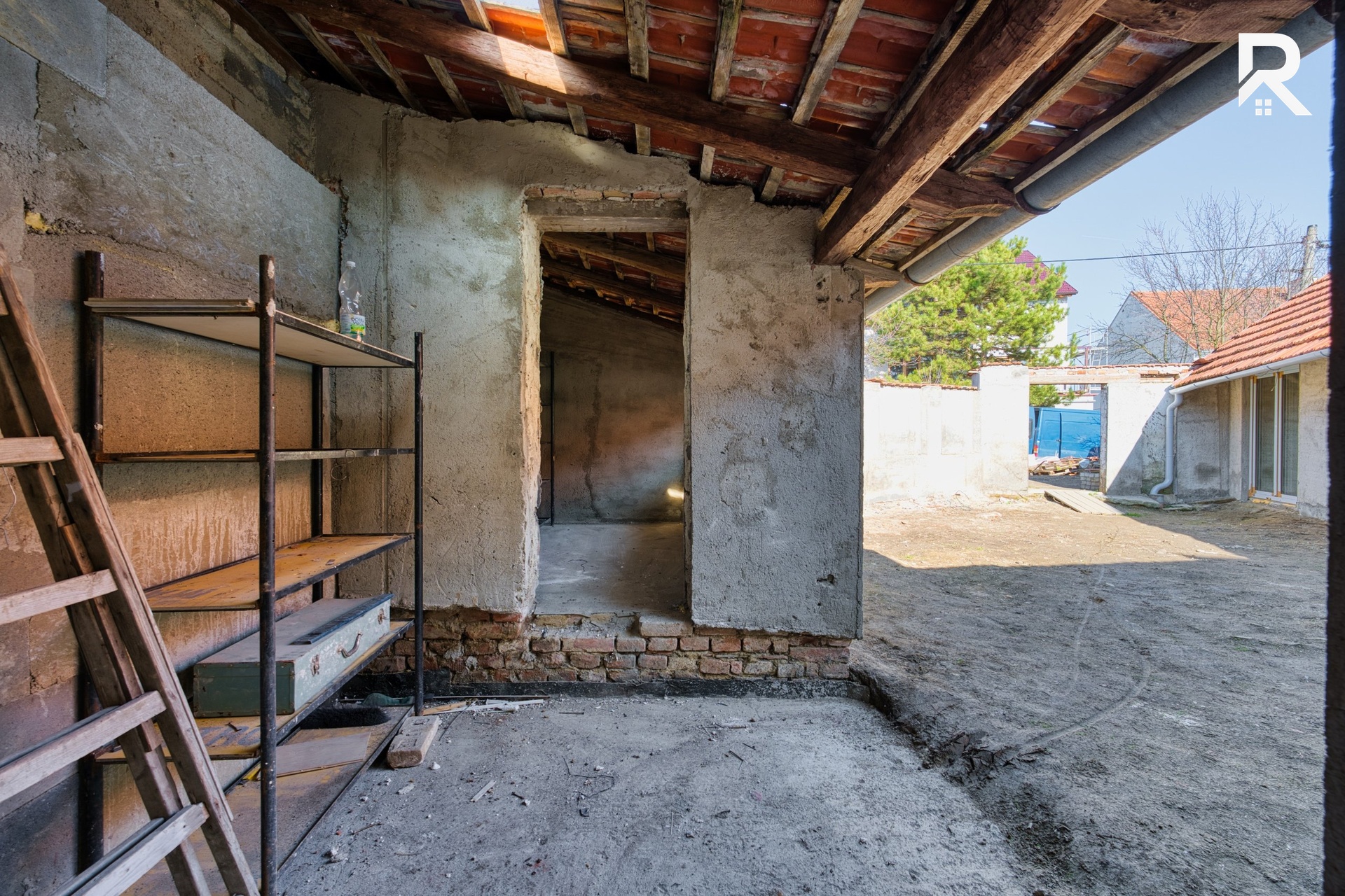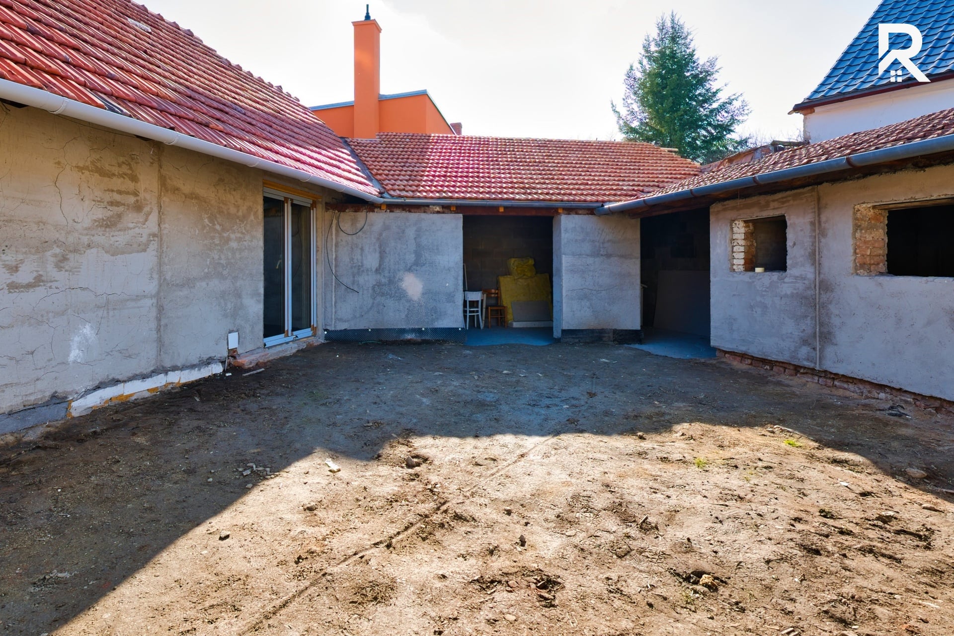 Současné dispoziční řešení domu počítá s praktickým uspořádáním 3+kk. Zadní část nemovitosti nabízí prostor dvora, který poskytuje dostatek soukromí a klidu pro budoucí relaxační zónu, zahradu nebo posezení s rodinou a přáteli. Nemovitost zároveň skýtá další potenciál rozšíření – jak směrem do dvorní části, tak vybudováním obytného podkroví, čímž lze výrazně navýšit obytnou plochu domu.