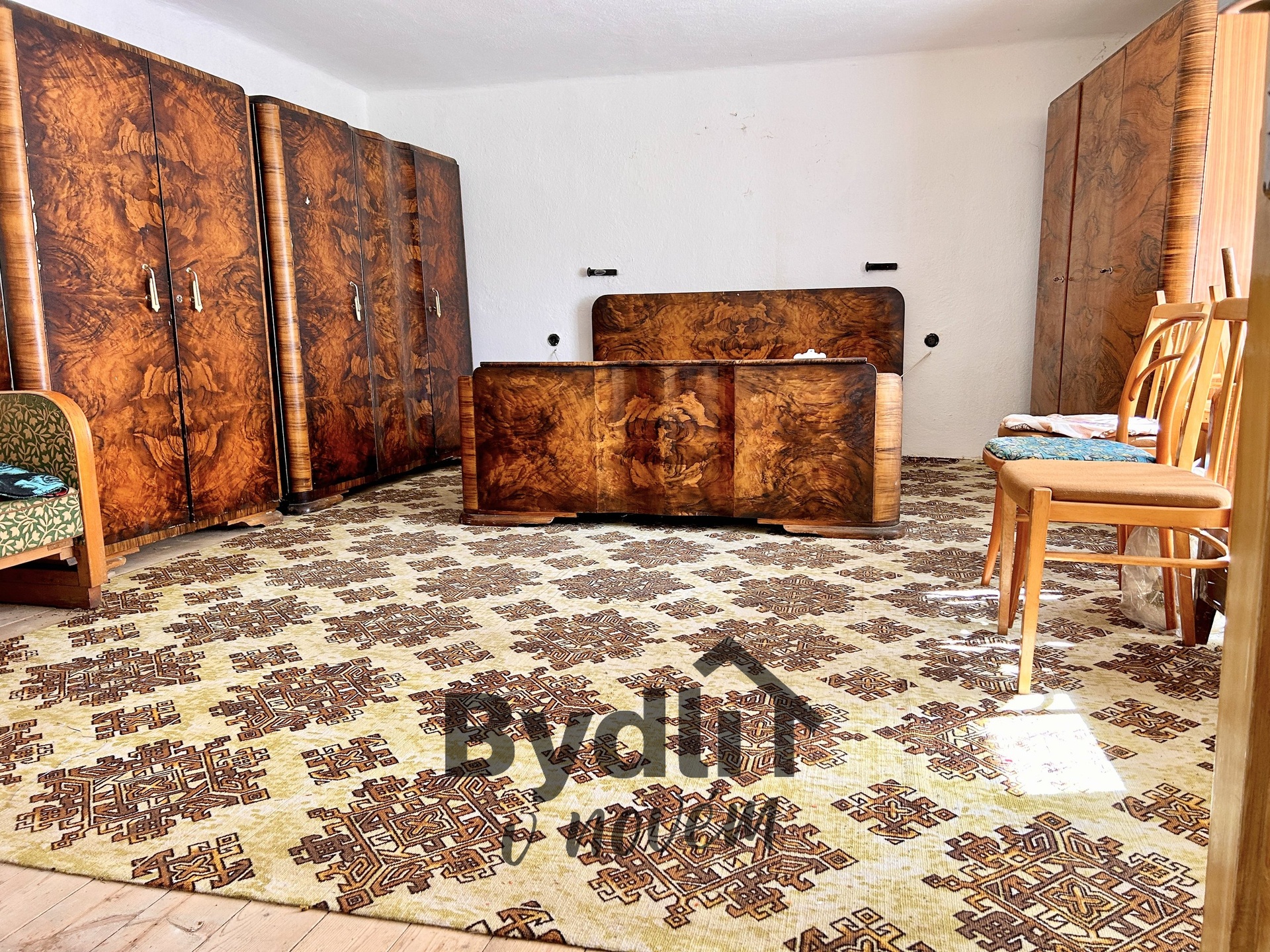 Dispozice domu 3+1 zahrnuje chodbu se skladem pro potraviny, koupelnu a prostorný obývací pokoj s krásnými, zachovalými kachlovými kamny. Dále je zde samostatná kuchyň, menší pokoj a dominantní ložnice s původním masivním nábytkem. Dispozice lze rozšířit o další velkou obytnou místnost.