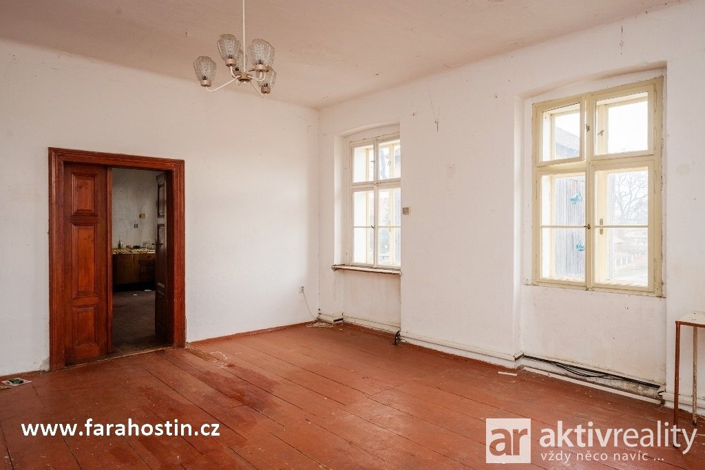 Hledáte dům, který není tuctový? Nabízíme Vám bývalou faru v obci Hostín u Vojkovic, jen cca 20 km od Prahy. Historická budova z roku 1882 o užitné ploše cca 420 m² stojí na pozemku o velikosti zhruba 1 350 m² a čeká na nového majitele, který v ní vytvoří originální domov.