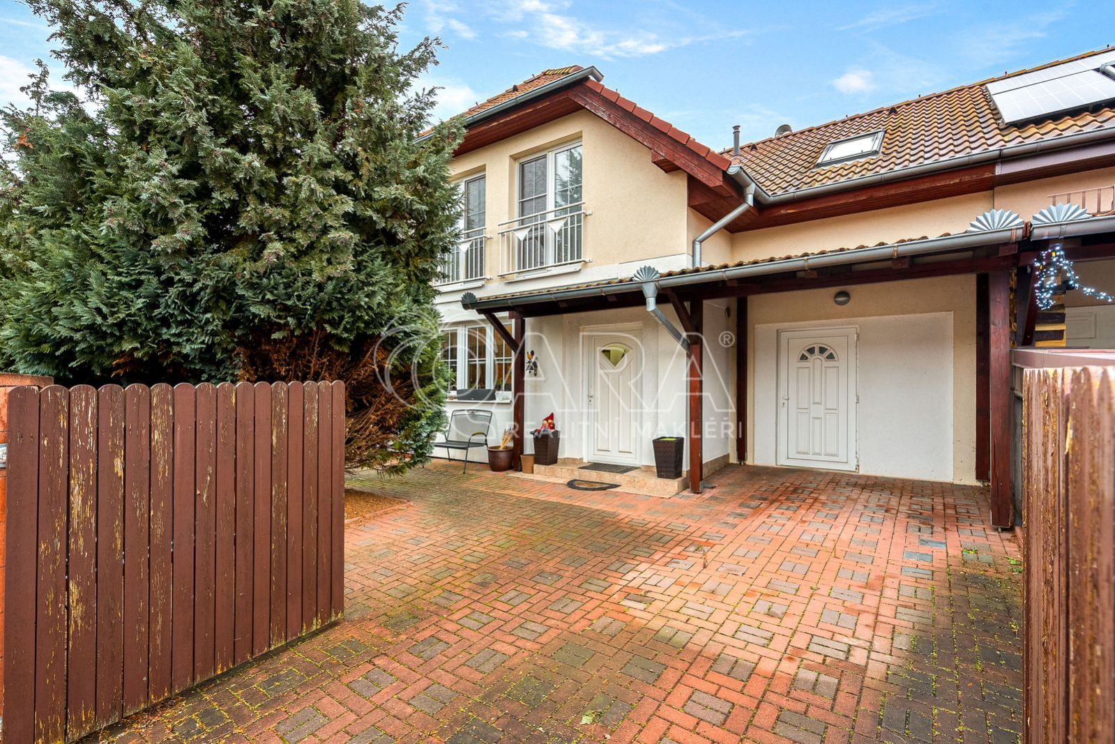 Pozemek má 447 metrů čtverečních, zastavěná plocha je 91 metrů. Tak akorát na komfort bez složité údržby. Před domem navíc stojí krásný jehličnan, který každoročně dotváří příjemnou vánoční atmosféru.