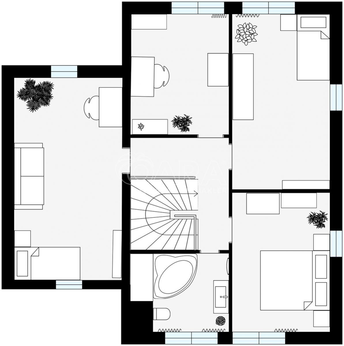 Velmi dobře udržovaný dům 5+kk nabízí téměř dvě stovky metrů čtverečních prostoru. Díky panoramatickým francouzským oknům je světlo hlavním hostem v přízemí i v patře. Najdete tu praktické vestavěné skříně a koupelna potěší velkorysým prostorem s rohovou vanou a výhledem na oblohu.