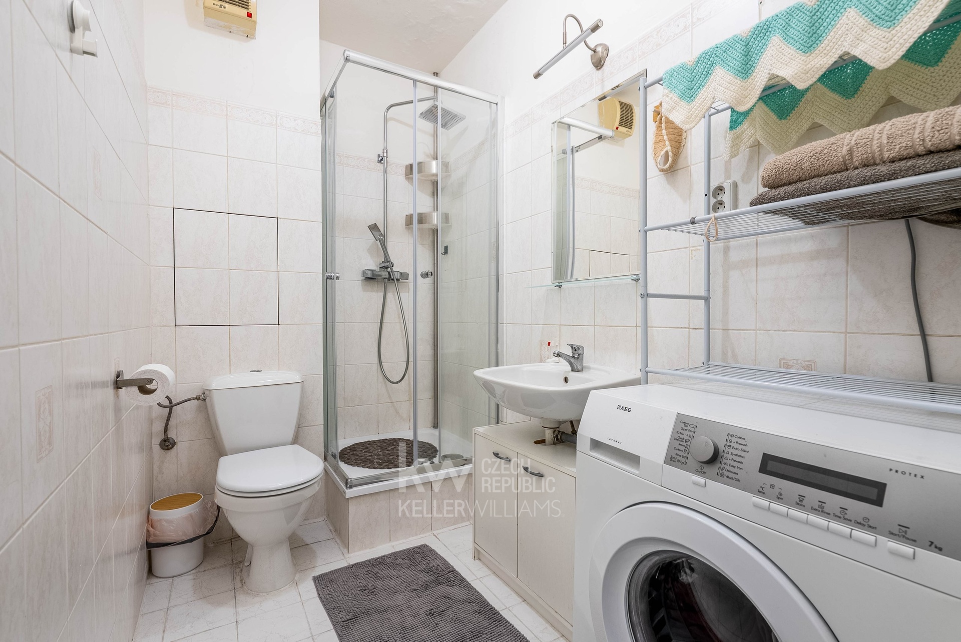 Dispozici dále doplňuje prostorná koupelna se sprchovým koutem a toaletou a vstupní chodba s vestavěnou skříní, která nabízí praktický úložný prostor. Byt je ve udržovaném stavu, vhodný jak pro vlastní bydlení, tak i jako investice.