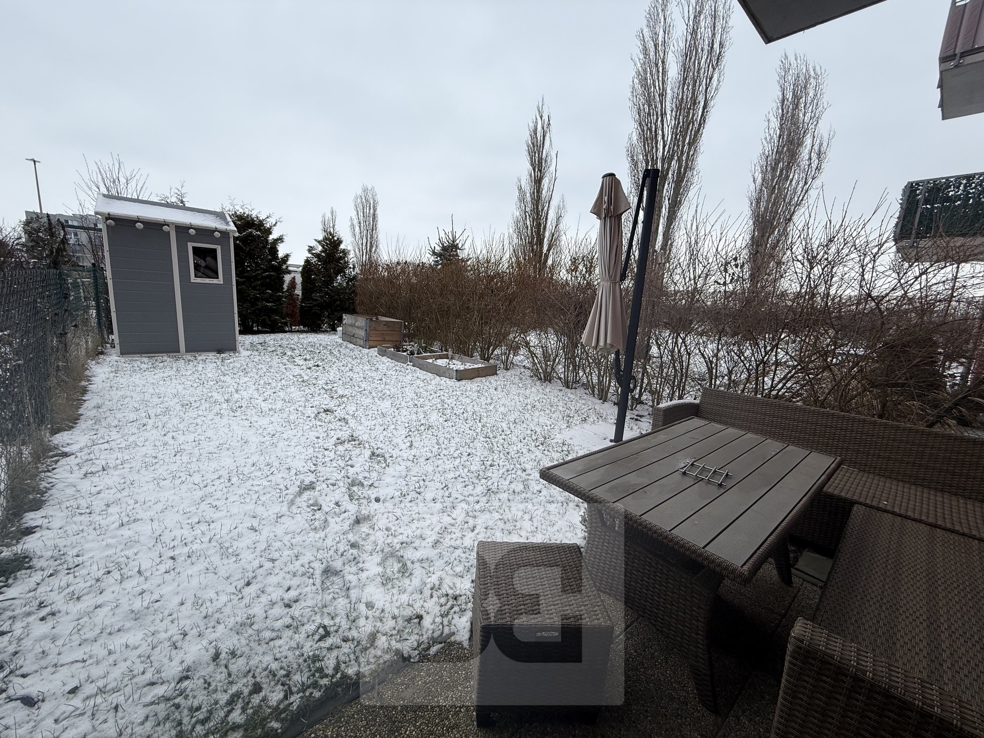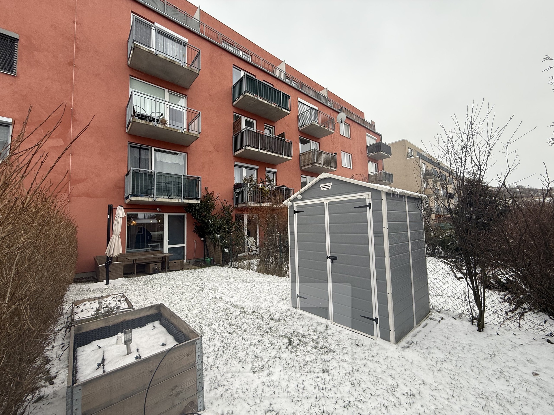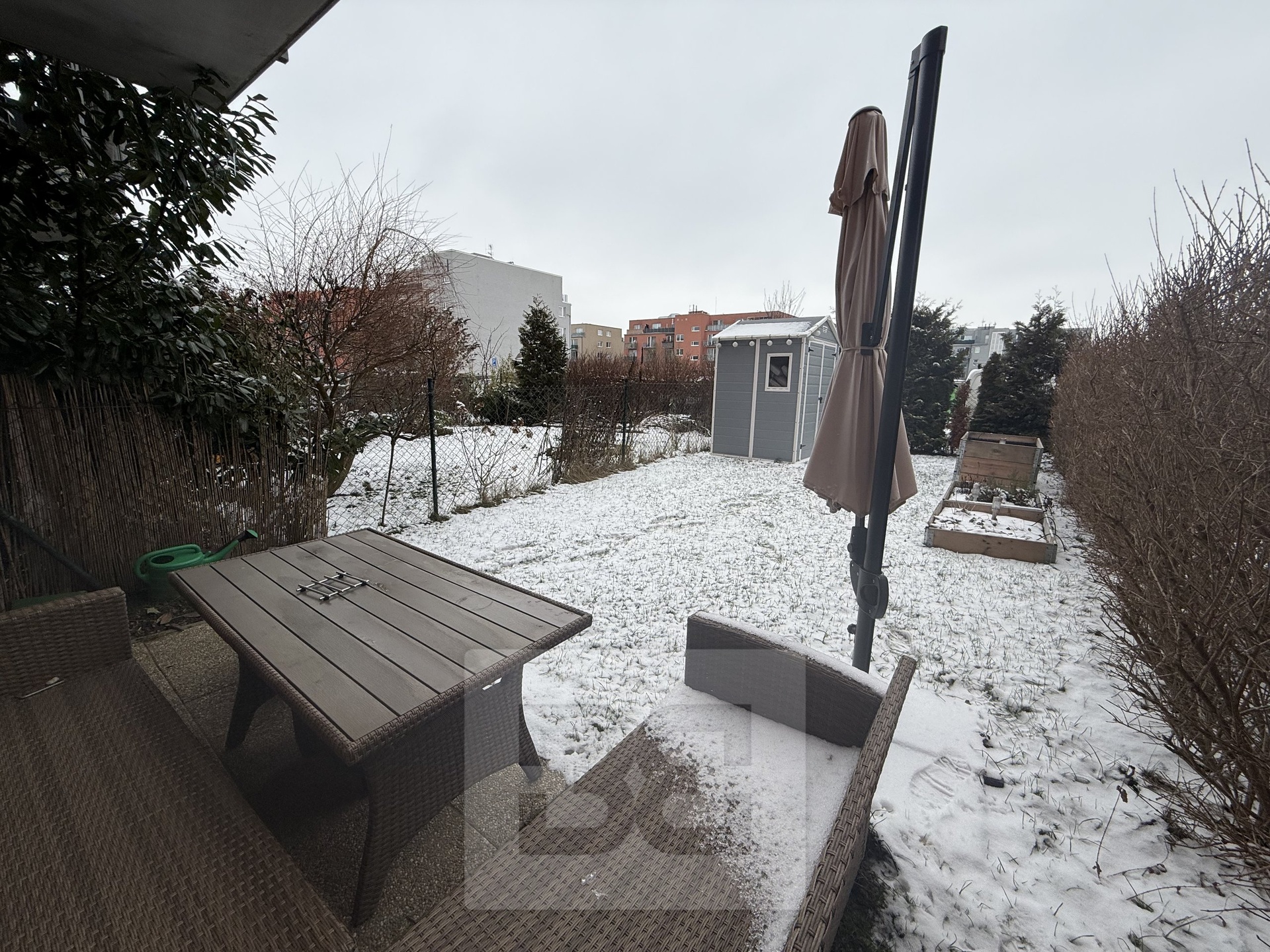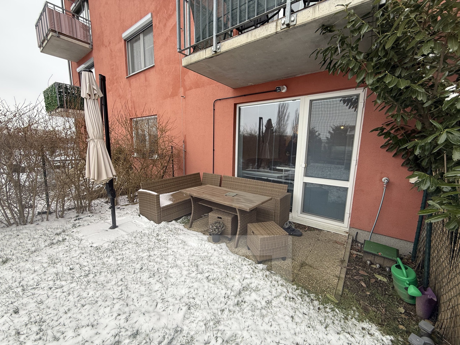 • Obytná místnost se vstupem na zahradu je vybavená nábytkem a zaujme obrovskou vestavěnou skříní
