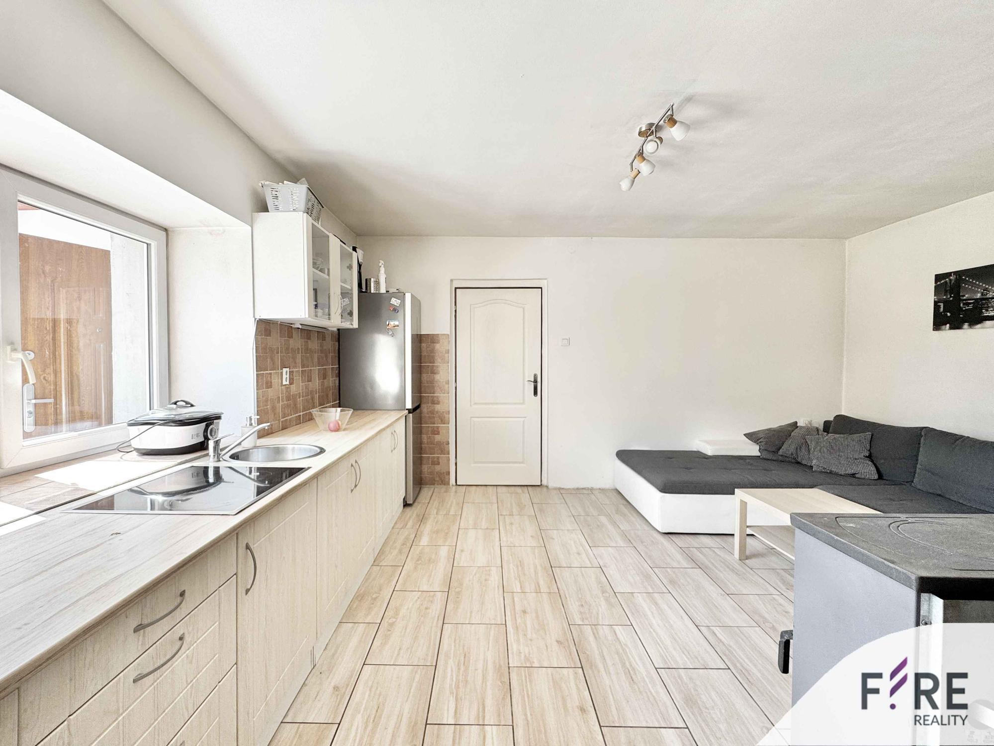 Hotové prostory: prostorný obývací pokoj propojený s kuchyní, ložnice, koupelna a chodba.