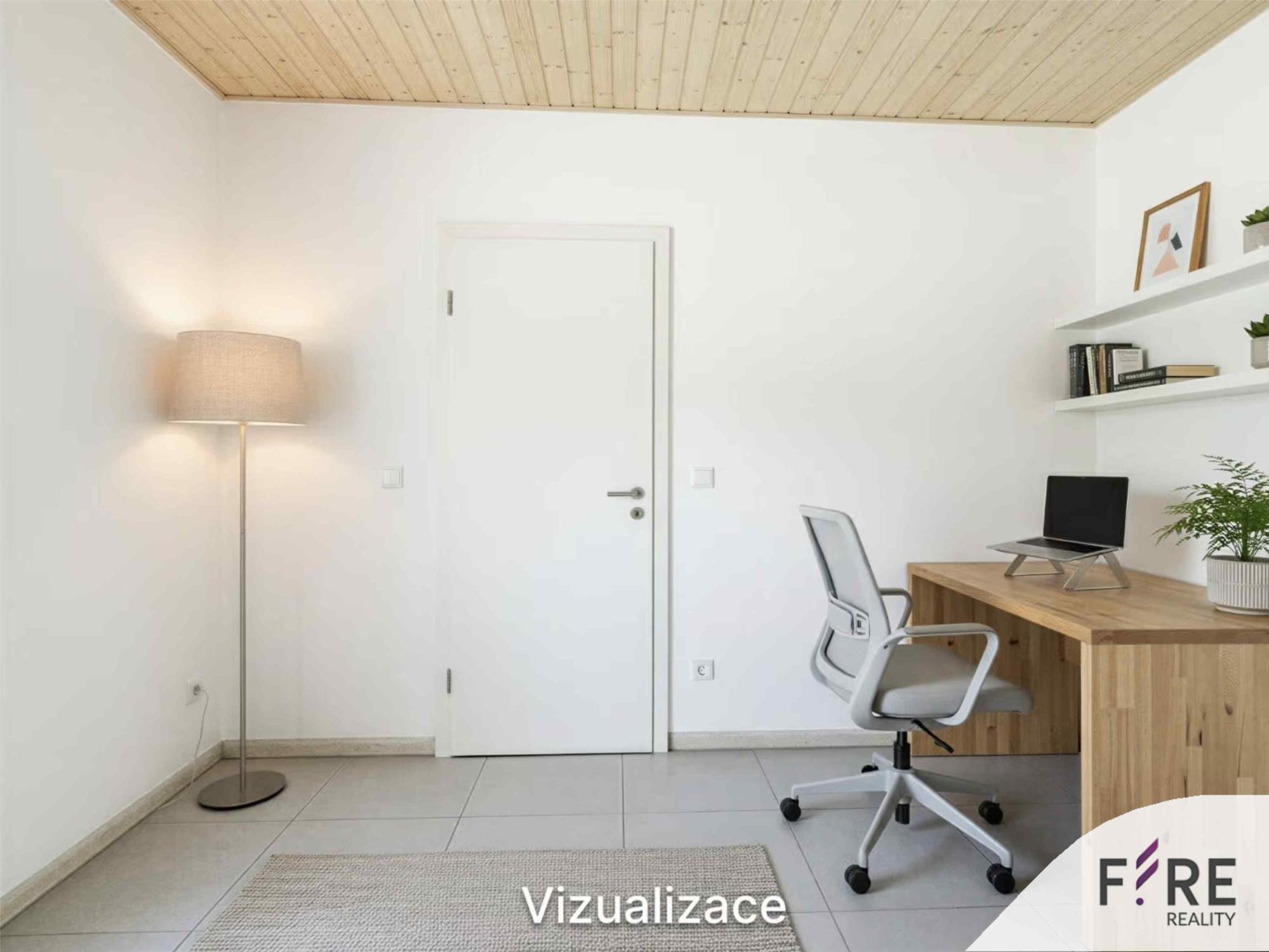Ve výstavbě: dva další pokoje a druhá koupelna, které umožní přizpůsobení dle vašich potřeb. V obou místnostech je připravené podlahové topení.