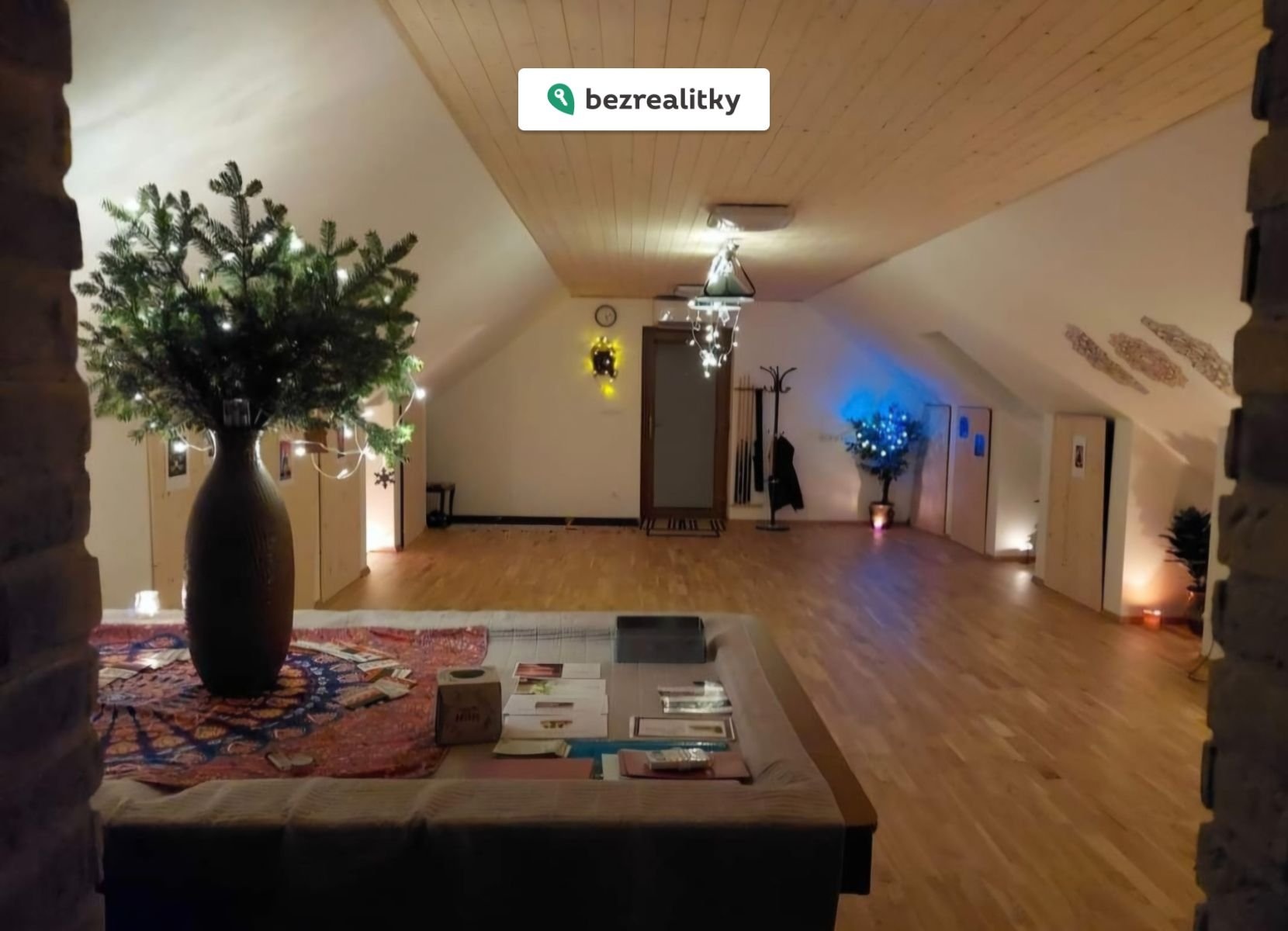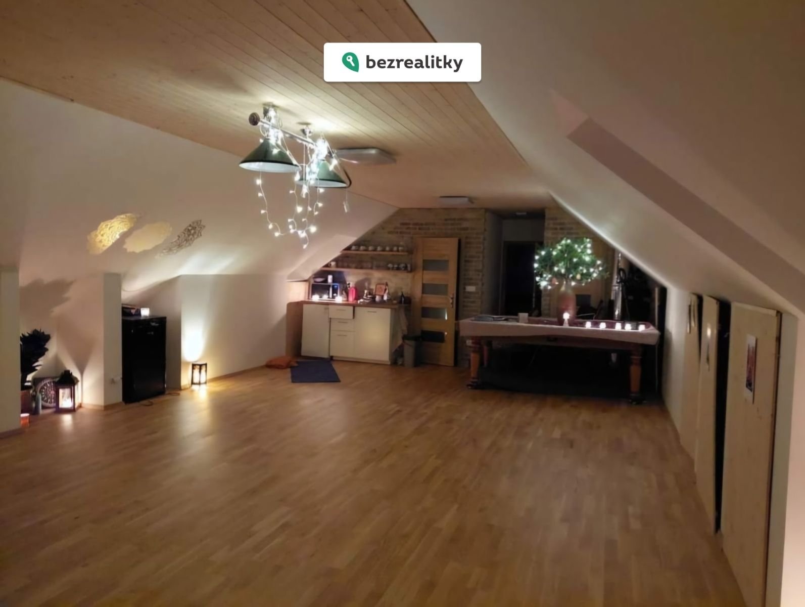 V patře je samostatná bytová jednotka s vlastním vchodem. Ta nabízí velkou místnost (cca 45 m²), pokoj, šatnu, kuchyň, koupelnu, WC, saunu a množství úložných prostor – ideální pro vícegenerační bydlení nebo pronájem.