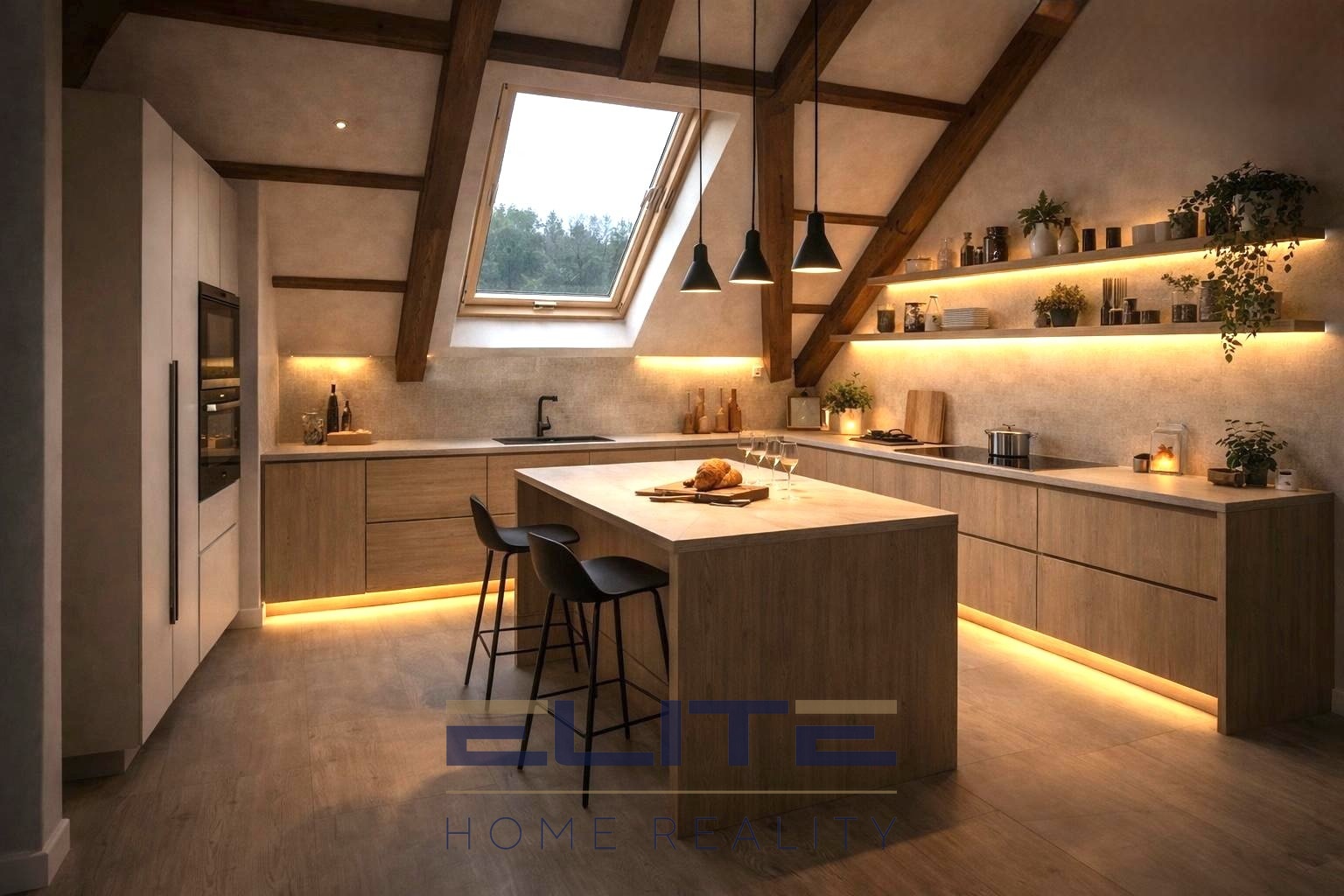 Kuchyňská linka není součástí – kupující si ji může přizpůsobit dle vlastních představ (k dispozici vizualizace i zvýhodněná realizace jak kuchyňské linky, tak dalšího vybavení - nabídka je dobrovolná)