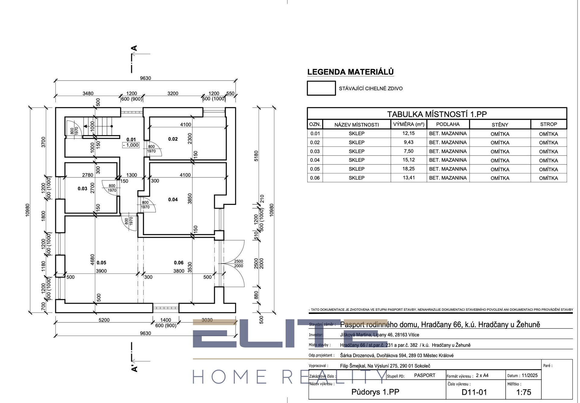 - PENB - energetická třída G vychází z původního zdiva, reálné náklady jsou díky rekonstrukci nižší.