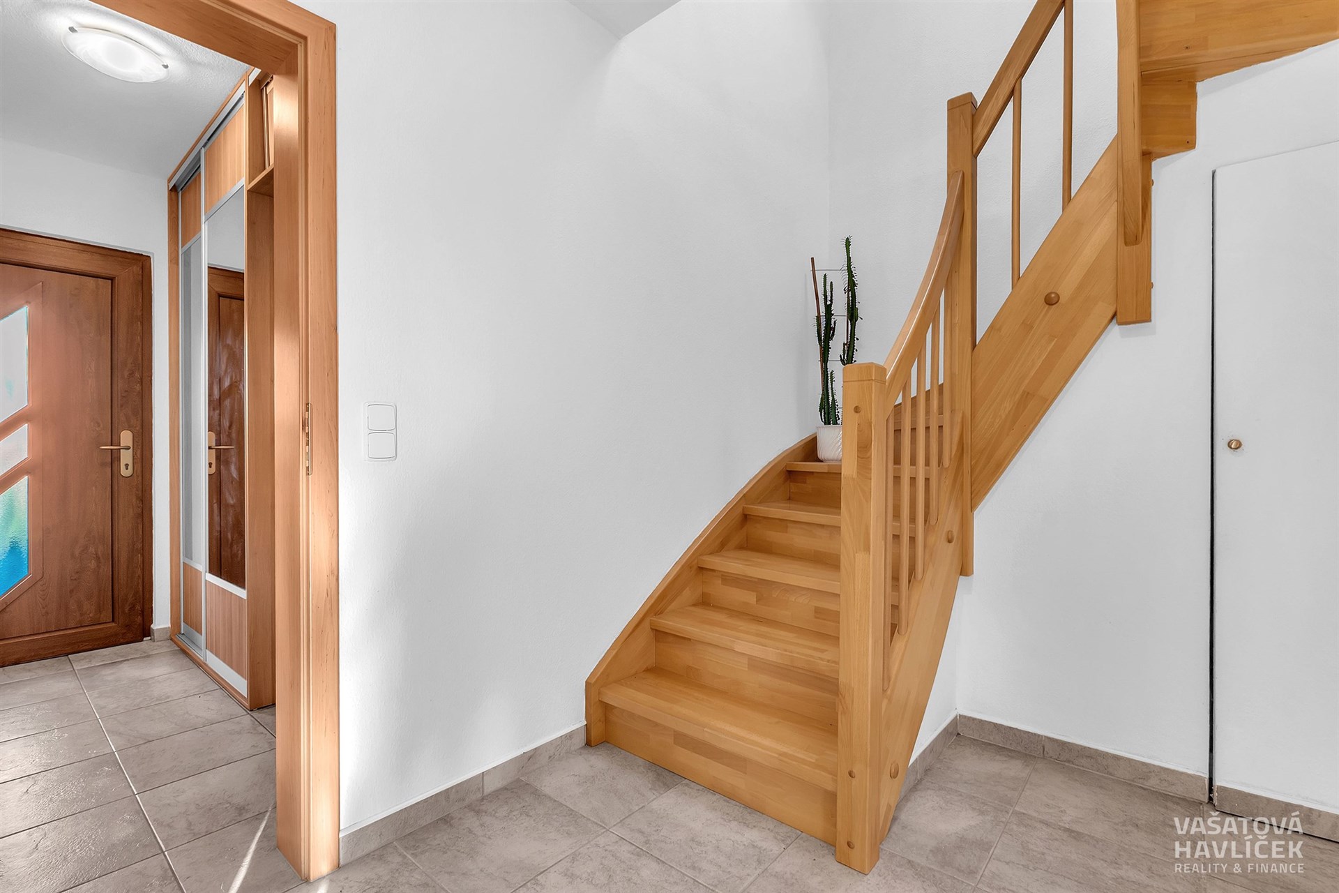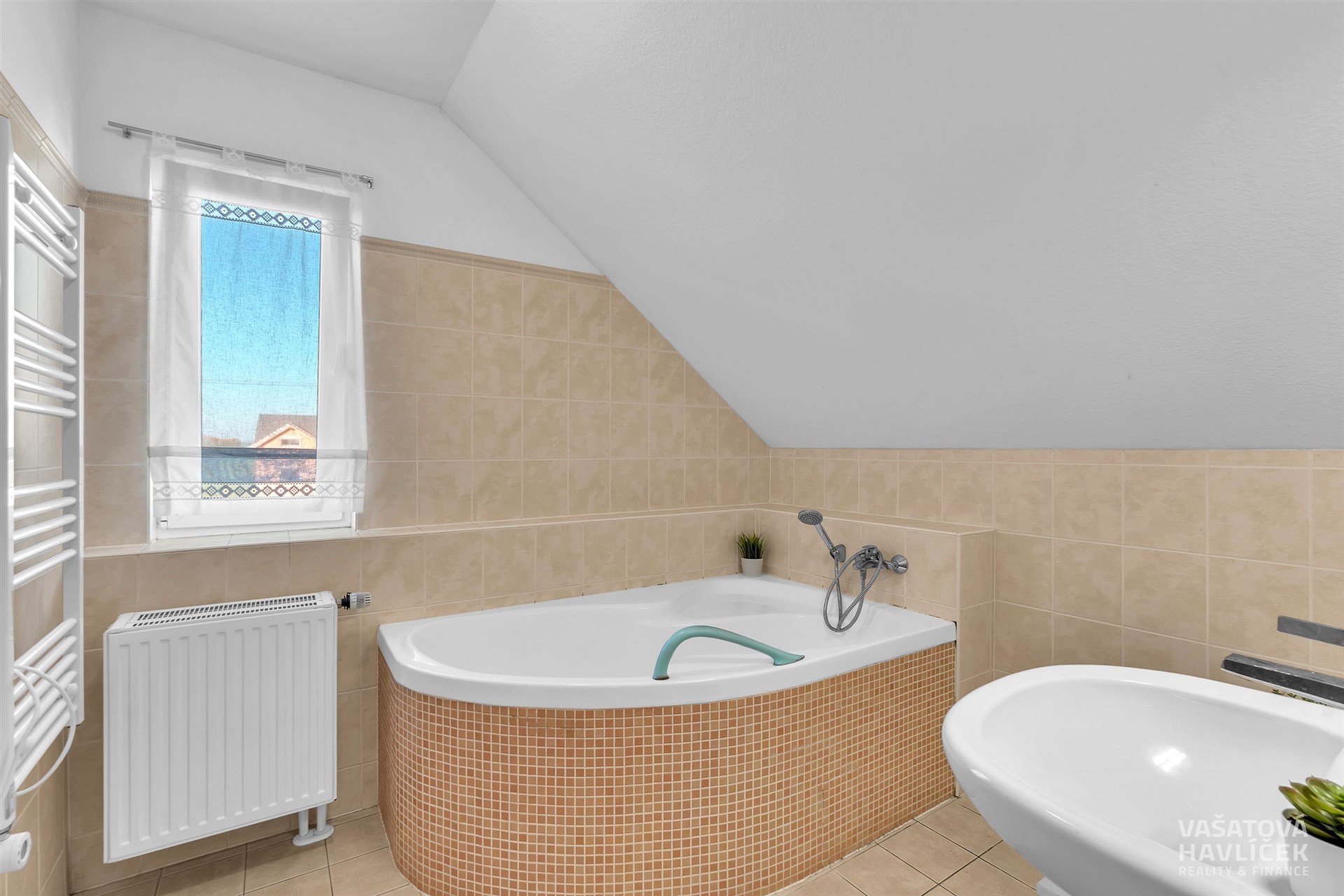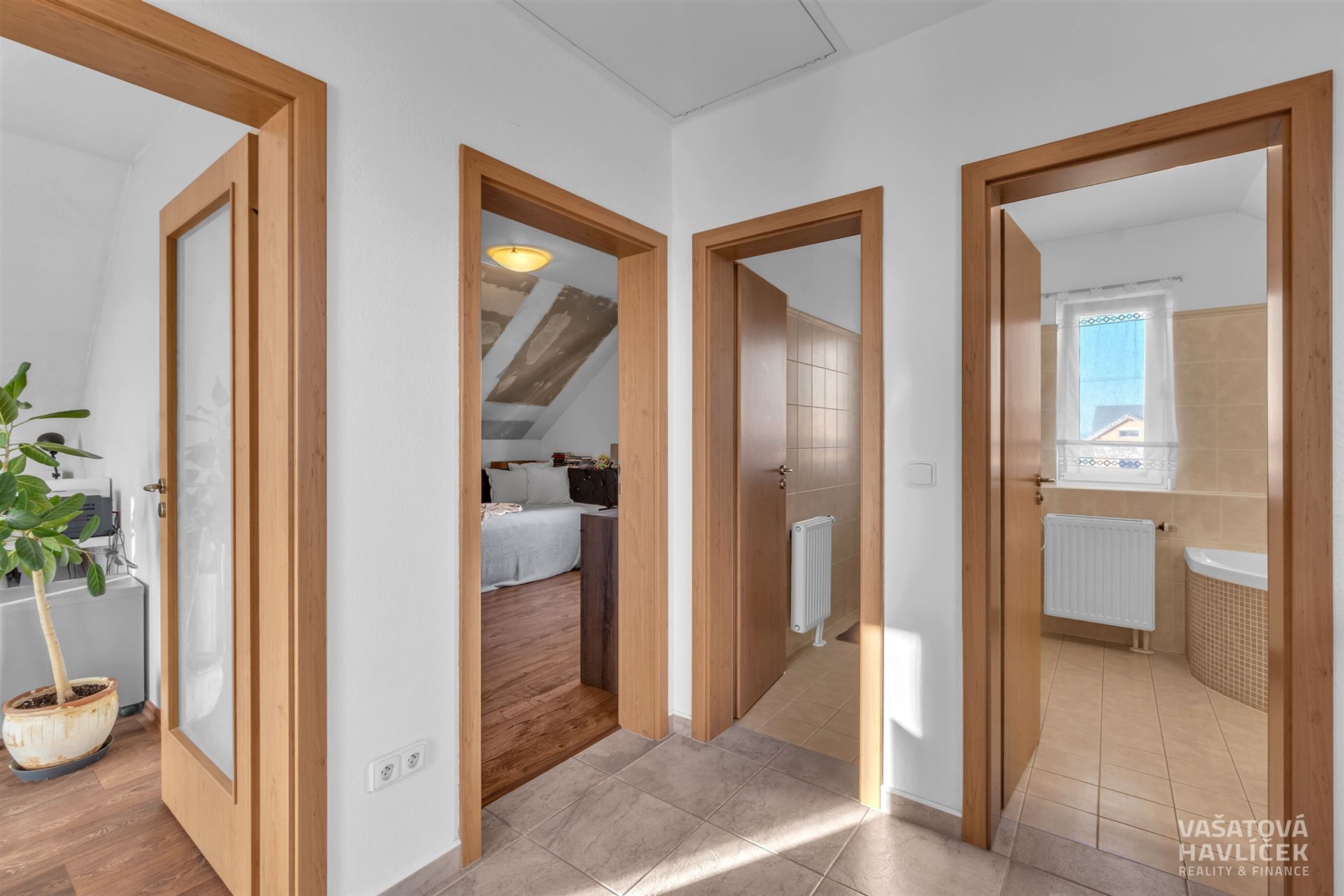 První patro nabízí klidovou zónu s chodbou a přístupem do půdního prostoru. Najdete zde tři samostatné pokoje, prostornou koupelnu s vanou a samostatné WC.