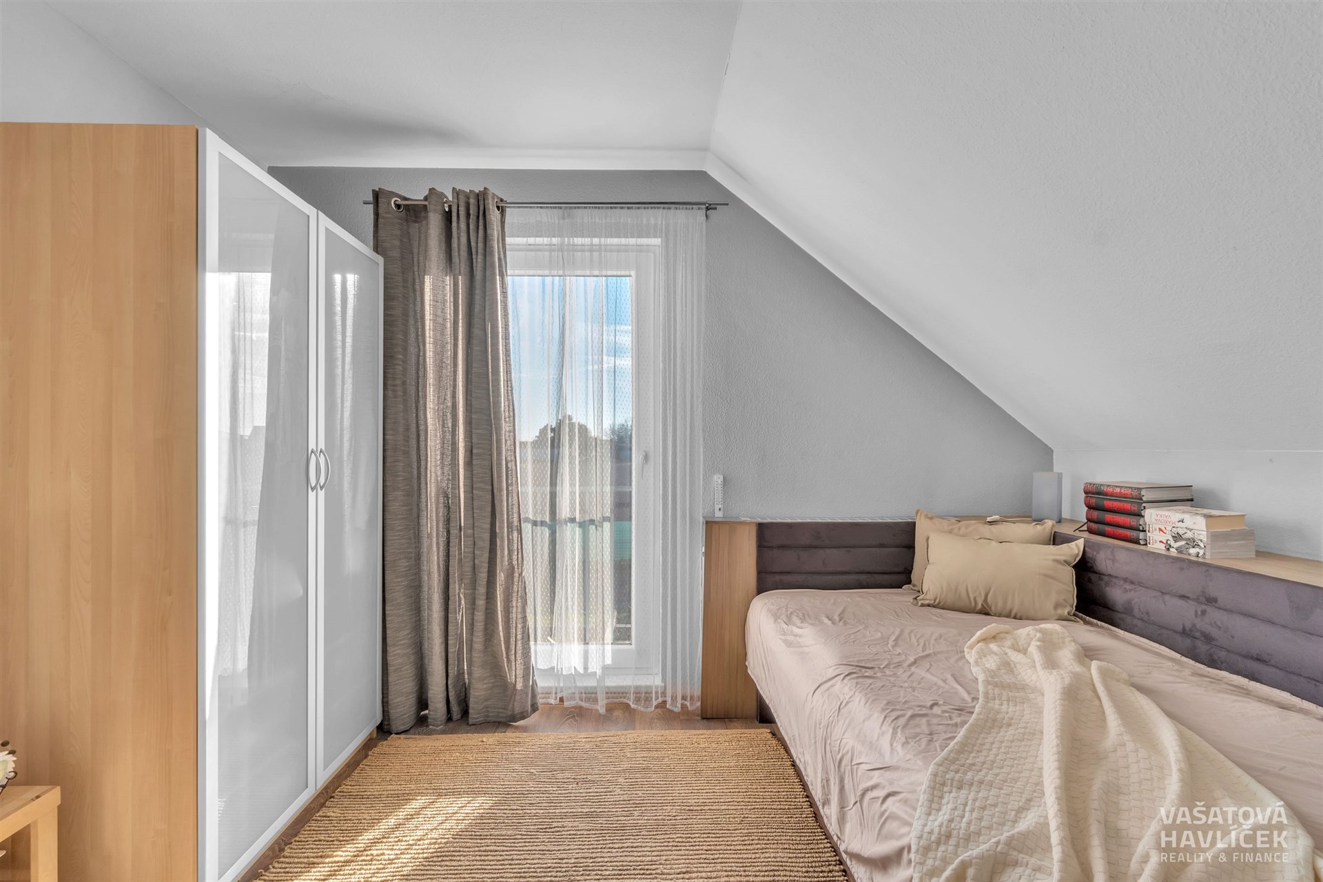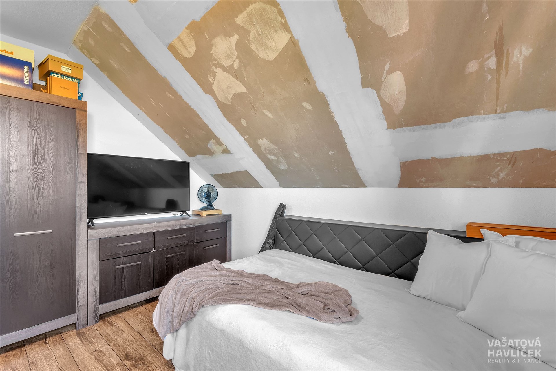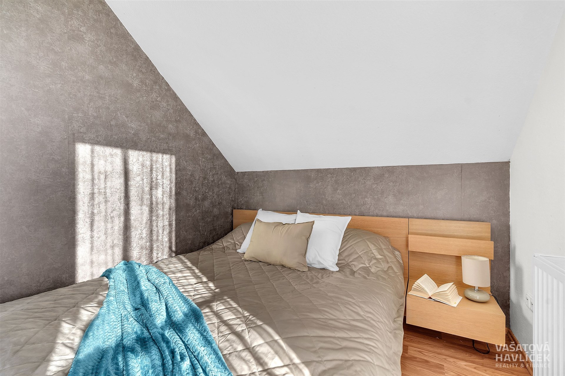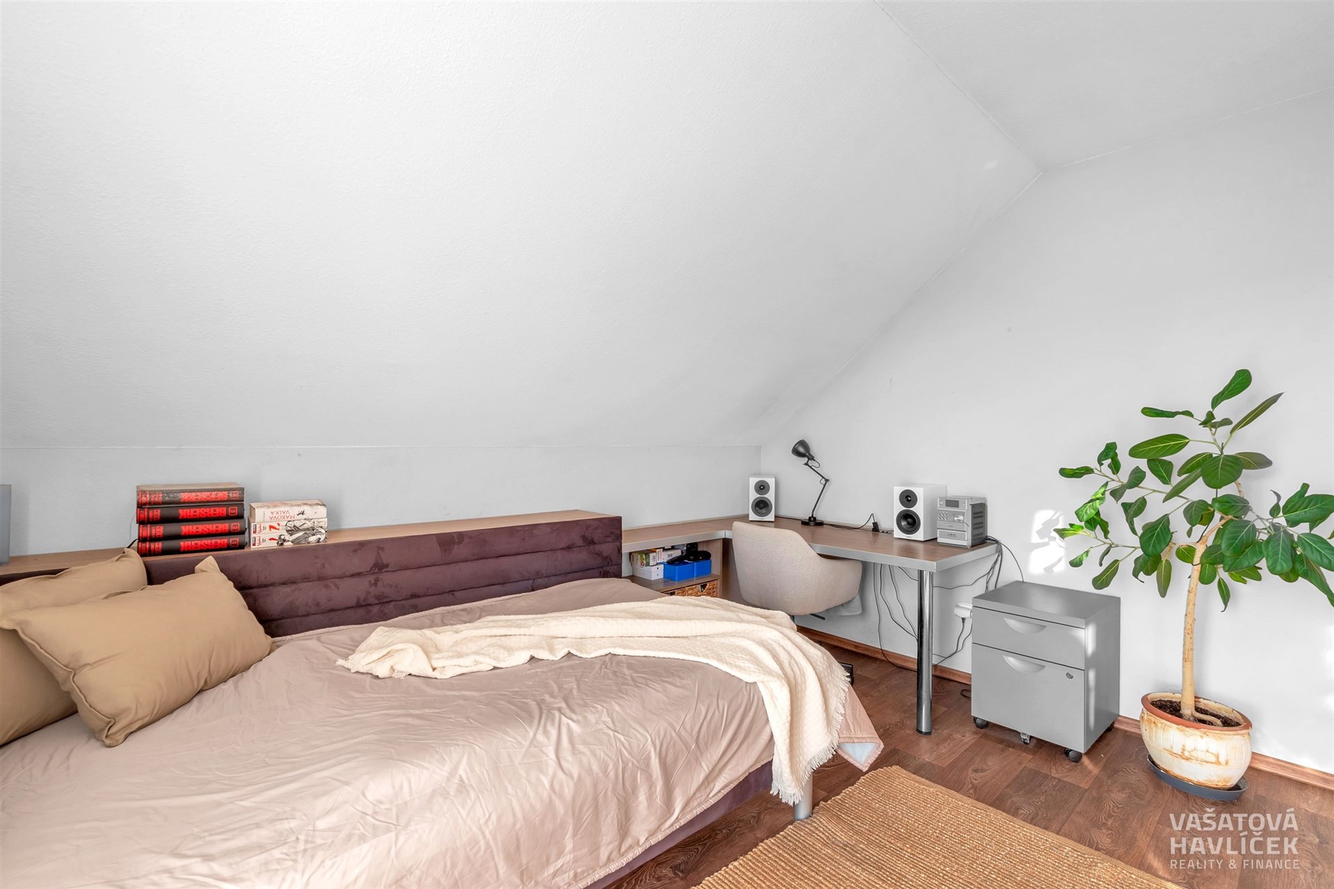 První patro nabízí klidovou zónu s chodbou a přístupem do půdního prostoru. Najdete zde tři samostatné pokoje, prostornou koupelnu s vanou a samostatné WC.
