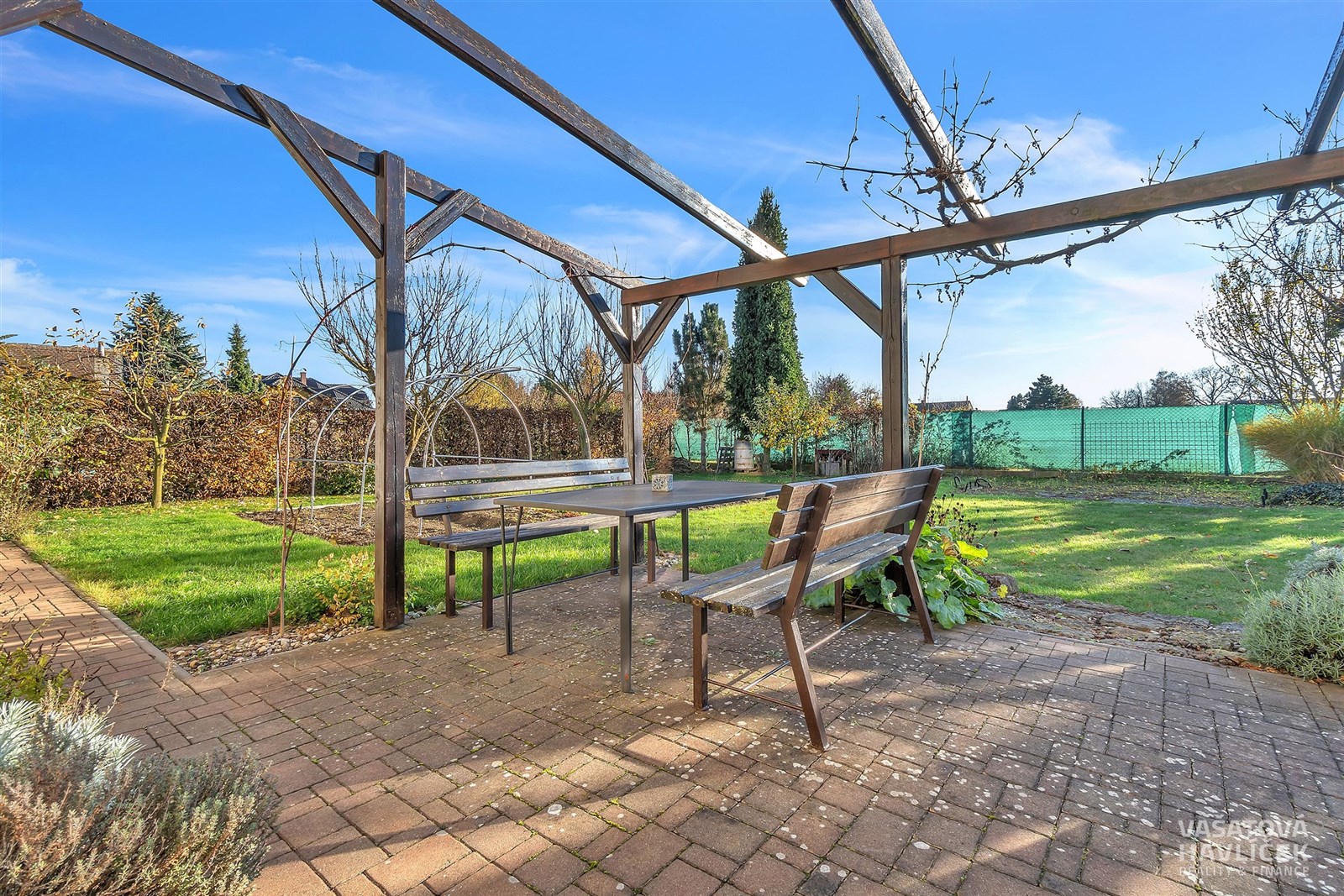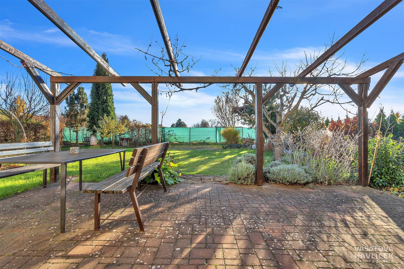Na udržovaném pozemku o celkové rozloze 647 m² najdete nejen samotný dům, ale i okrasnou zahradu se vzrostlými stromy a keři, které vytvářejí příjemné soukromí pro posezení na terase pod pergolou. Milovníci zahradničení ocení užitkovou část zahrady s ovocnými stromy (jabloň, meruňka, třešeň, švestka) a vrtanou studnu hlubokou 11 m, určenou pro zalévání. Na pozemku je povolena výstavba doplňkové stavby o velikosti 15 m² – ideální pro technické zázemí či malou dílnu. Přímo na dům navazuje zděná kůlna (6 m²) a kryté garážové stání. Před ním je vydlážděný prostor umožňující další parkování – to vše na vlastním pozemku.