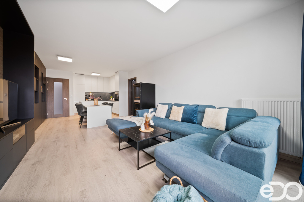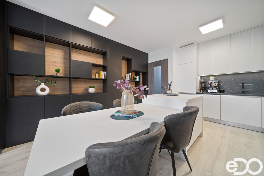 Nejedná se o standardní developerské provedení. Byt byl kompletně řešen s profesionální interiérovou designérkou a zahrnuje řadu nadstandardních prvků a příplatkových materiálů, které posouvají úroveň bydlení o několik tříd výš.